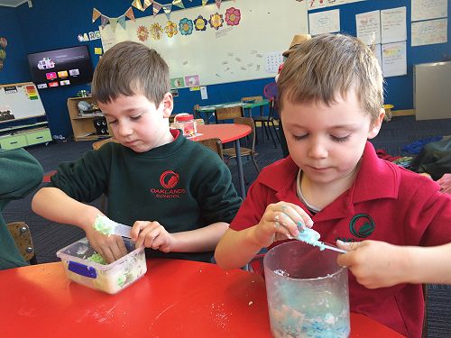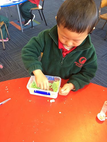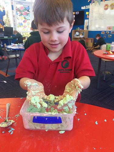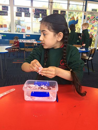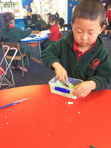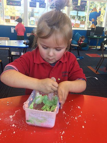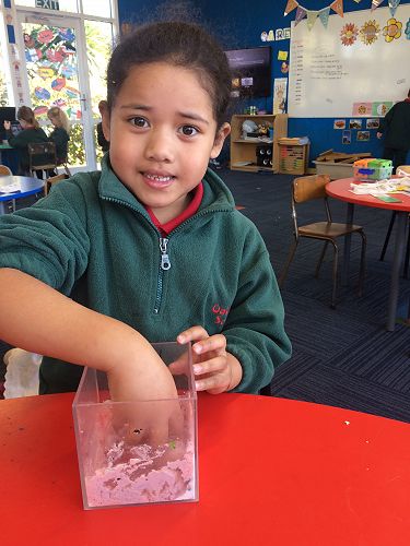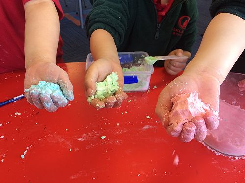 Across week 5 everyone got a turn to make kinetic sand. Once made they all had fun squishing it in between their fingers and making it into things.