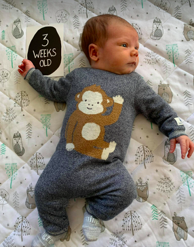 Here he is modelling the latest monkey sleepwear. Clearly the young man is going to be at the forefront of fashion as time goes on.