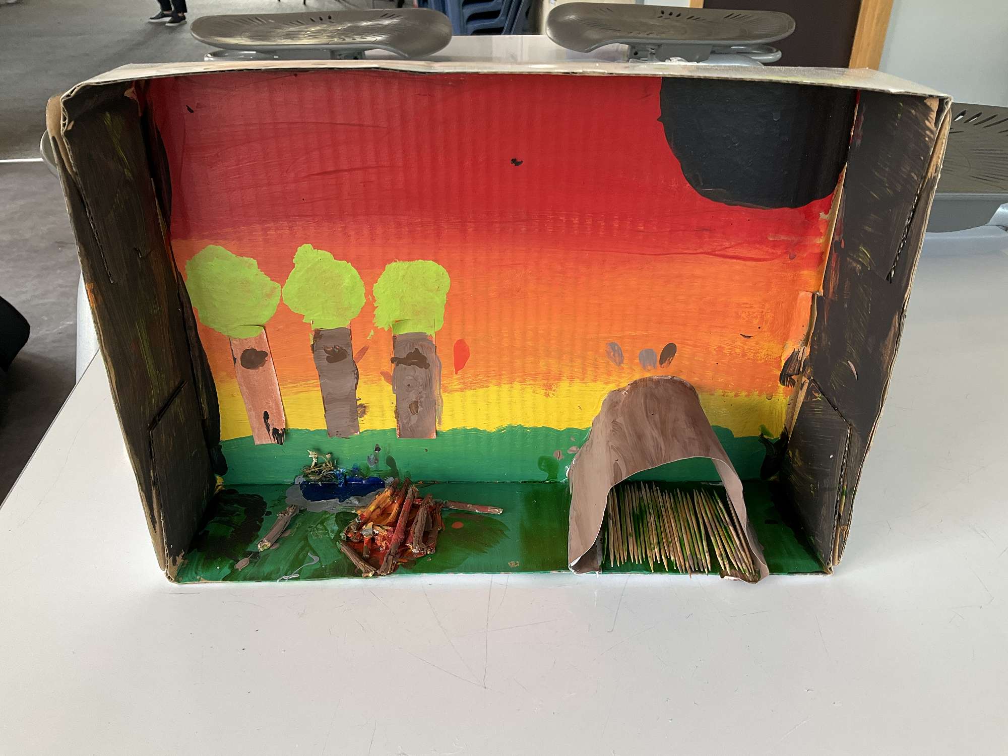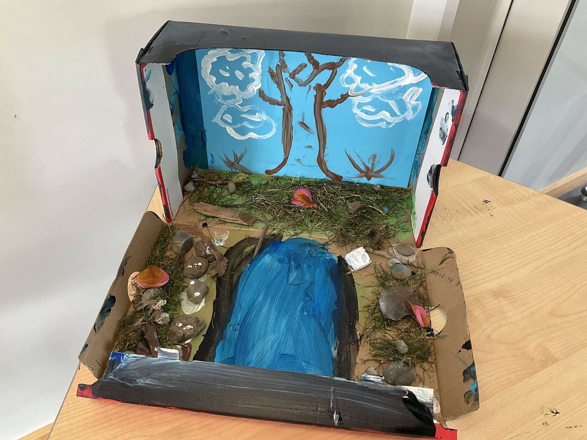 I learned what all the spheres are, but the one that I think is the most interesting to me is the biosphere. It is about all living things like animals and humans. I am making a diorama and it is made with grass and stones and paint.