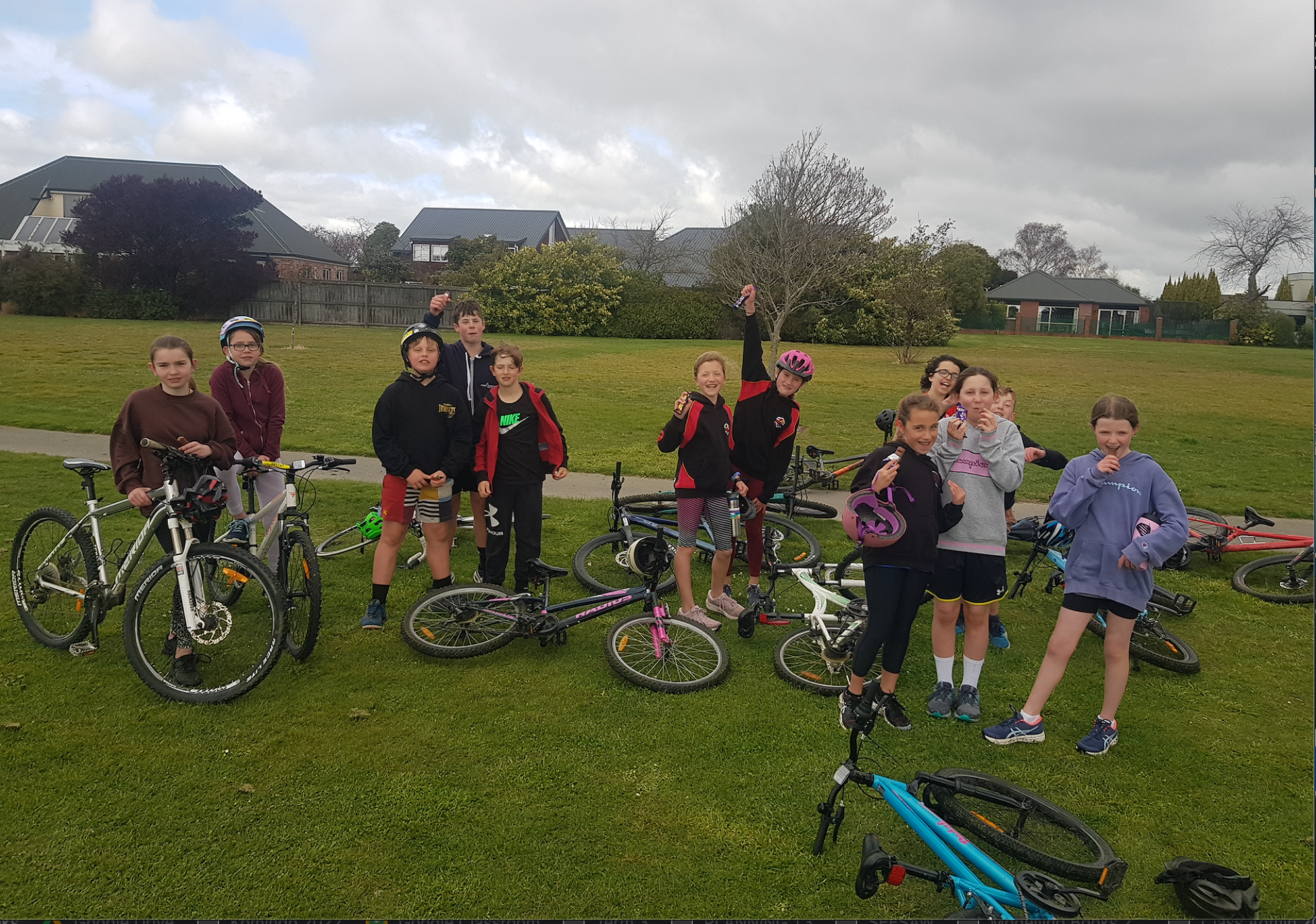 For duathlon training we would come to Westlake reserve Mondays, Thursdays and Sundays. The students doing this would do many different activities from relays to biking for eight minutes straight! Mondays and Thursdays were at 4:30 and Sundays at 9:30. For relays usually we would be able to choose our own groups or get sorted into groups with people who have similar ability. There were multiple different types of relays. My favourite had teams of three. Two bikers and one runner.