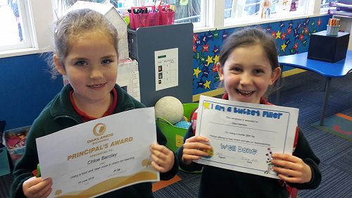 On Monday at our whole school assembly Zara Harrison and Amela Wilson were awarded a Bucket Filler Certificate. Chloe Barclay and Siyuan Wang received the Principal Award. Well done to all of you, keep up the great work!!!!