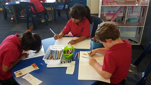 We are using the writing spaces to practise our skills through card making, shopping lists, writing new words, copying words from story books and writing stories.