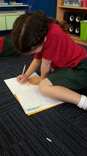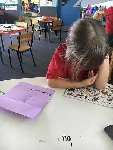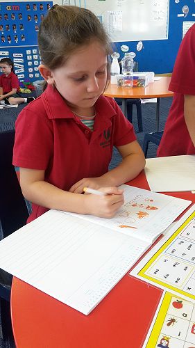 We then looked at the letters and what sound check letter makes, as we build our knowledge of the alphabet we are able to hear and write more letters in new words. When we are writing our stories we say each word- listening for the beginning sound we can hear. We then match it with to our alphabet card, learning the letter, its sound and something beginning with that letter. As our knowledge develops we are able to stretch out new words to hear and write the dominant middle and end sounds.