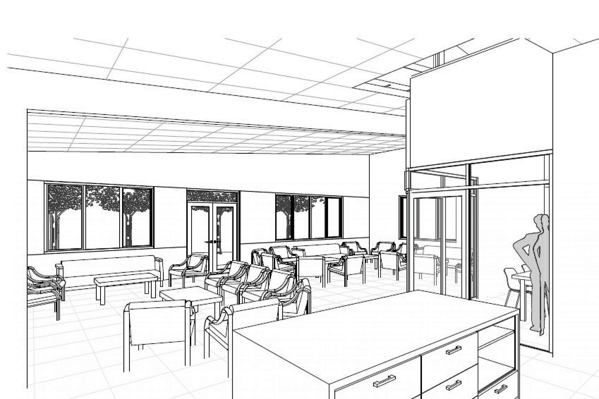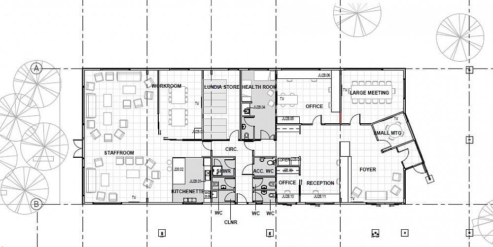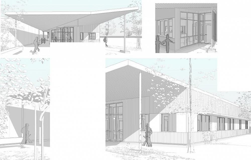 The building includes a light-filled foyer and reception area, meeting rooms and a staff room.