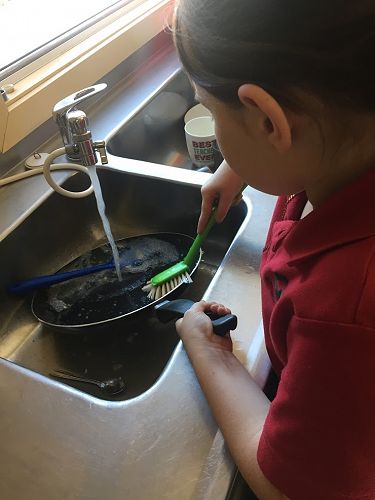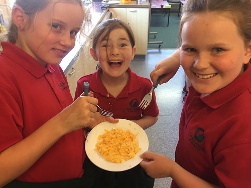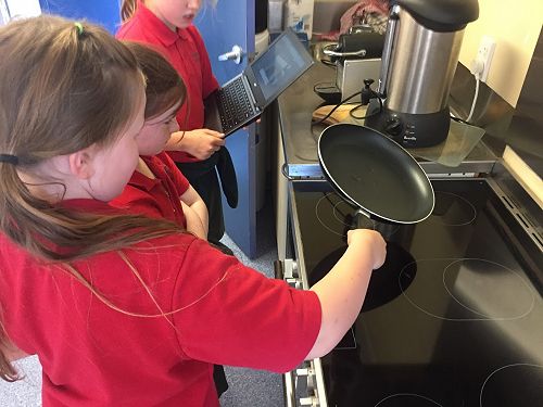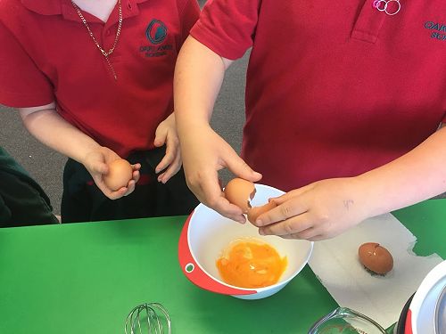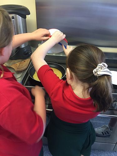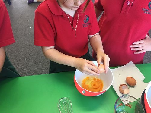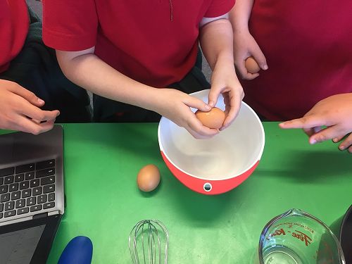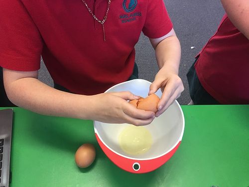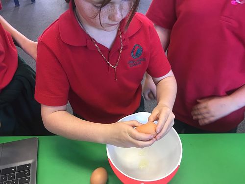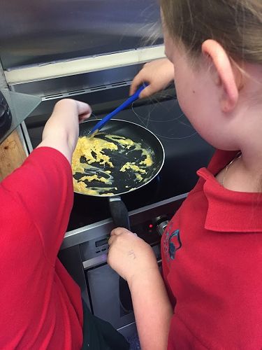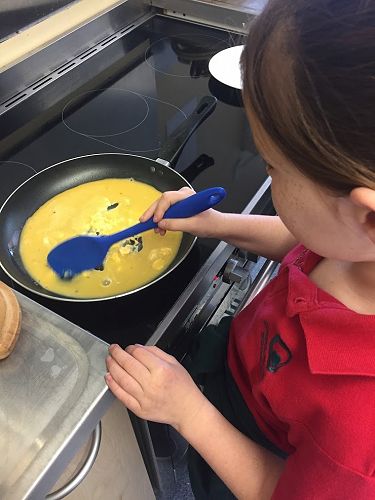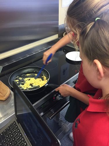 This week we had a group of three girls who had a go at cooking scrambled eggs. (Check the photos below!)