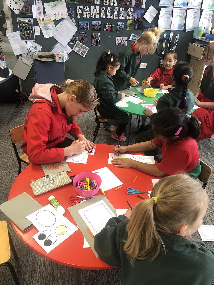This week we were super lucky to have some of the Year 7/8 children come and work in our space. This example of showing community was a very special time as they worked with our ākonga on a cooperative activity making Christmas cards. We don't know who enjoyed it more - the senior students, the junior students or the teachers!