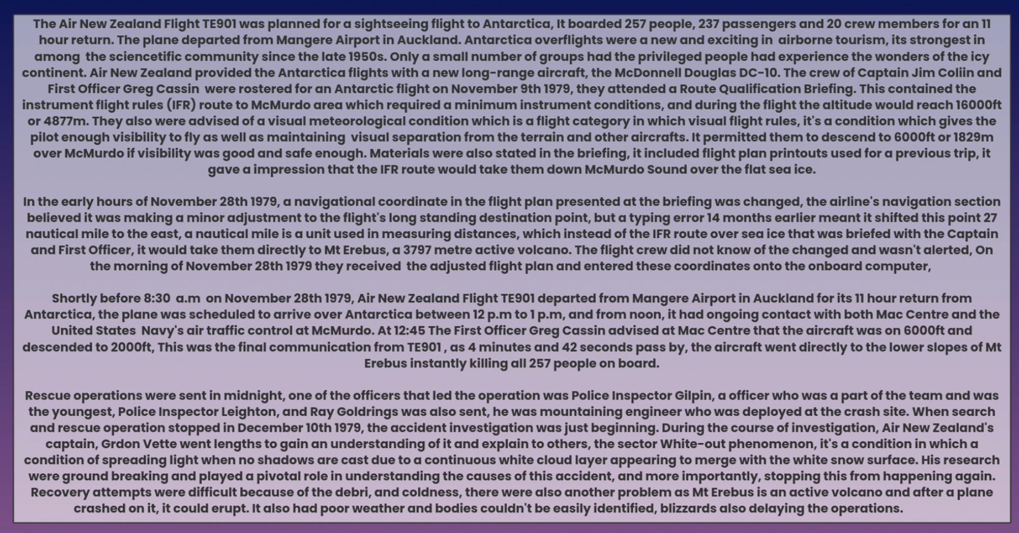 Current Events: Mt. Erebus Disaster - This week the students have been researching about the worst air accident in New Zealand history, the Mount Erebus Crash in Antarctica in 1979.