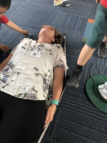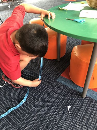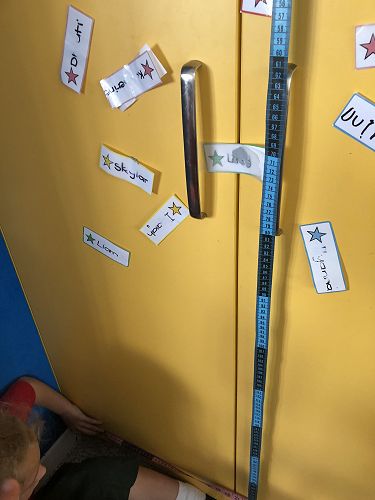 Tape measures were used and we found the height and length of many things in the learning spaces.