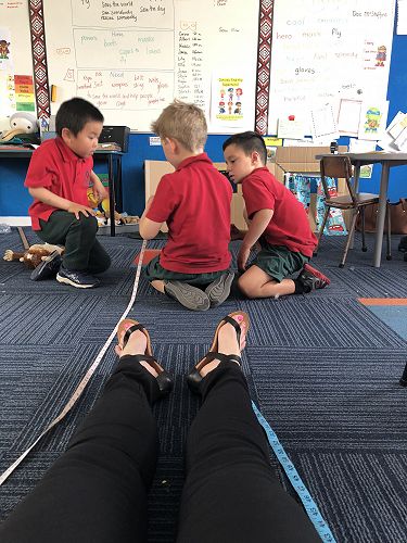 We have introduced measurement and asked what can we use to measure things? The children posed a statistical investigation question 'Who are the tallest and shortest in the whānau group? and 'How will we find out?'
