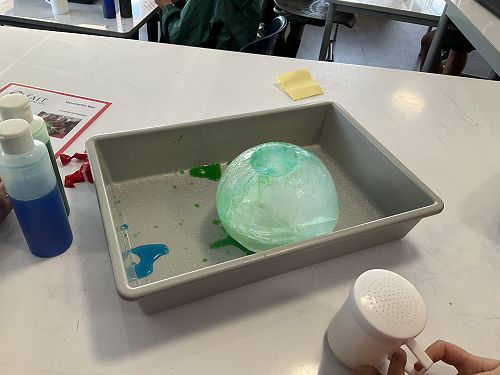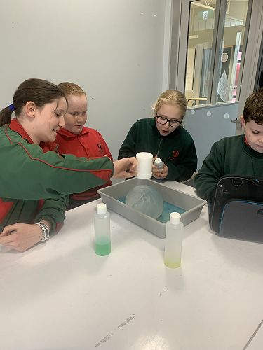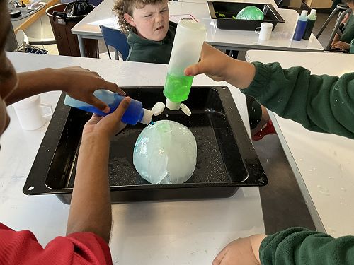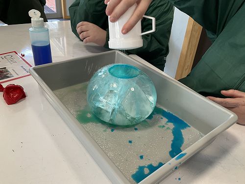 Students have been performing experiments in relation to ice and how it melts. Students have been adding salt and food colouring to see the effects that salt has on the ice. We have been recording our observations and developing our scientific skills around states of matter and heating and cooling. We then had a bit of fun and dropped the ice from a height to see the impact of gravity on a giant ice ball.