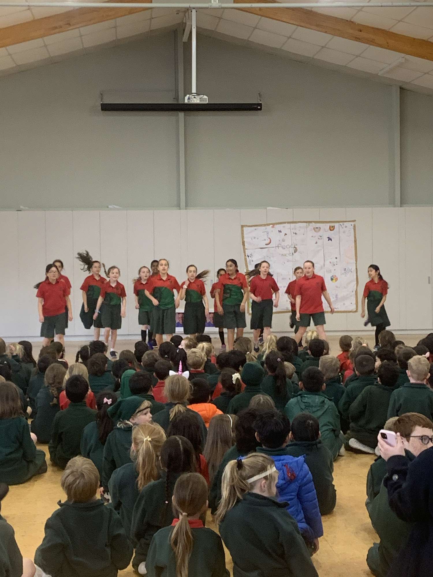 The Yr 5/6 and Yr 7 ⁄ 8 Jump Jam teams performed their Jump Jam routine to the students today as a practice performance for their competition on Saturday. The Yr 5/6 students did very well in their first performance before a crowd, despite being very nervous. They displayed lots of expression and energy.