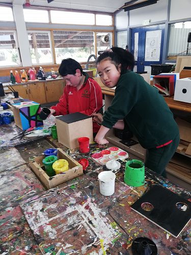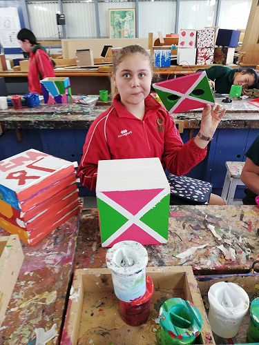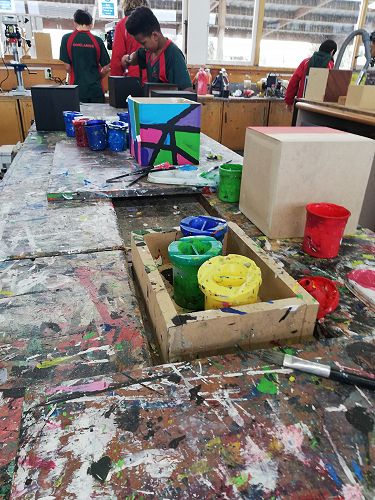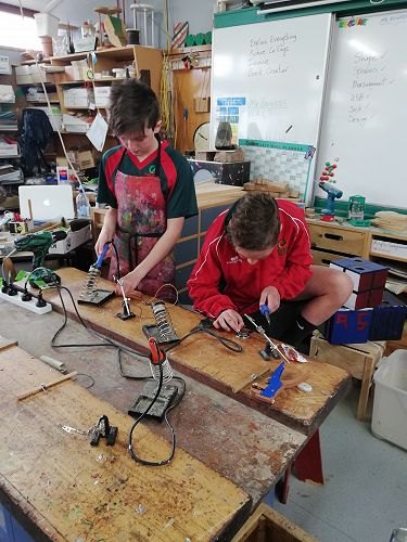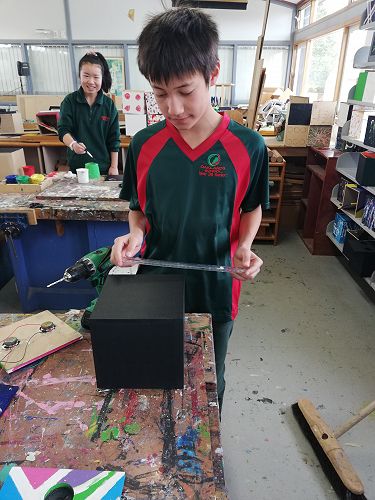 In Woodwork the students are making speaker boxes. Sanding, painting, soldering are just a few of the skills they are learning.