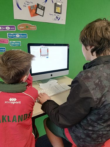 In the Digi Tech group, students are working on game design using a Scratch and Hopscotch. A small group of boys were also working on the Khan Academy site. Each week students sit with the teacher and explain the code running in the background of their game. It is very impressive to listen to them talk about what they have done.