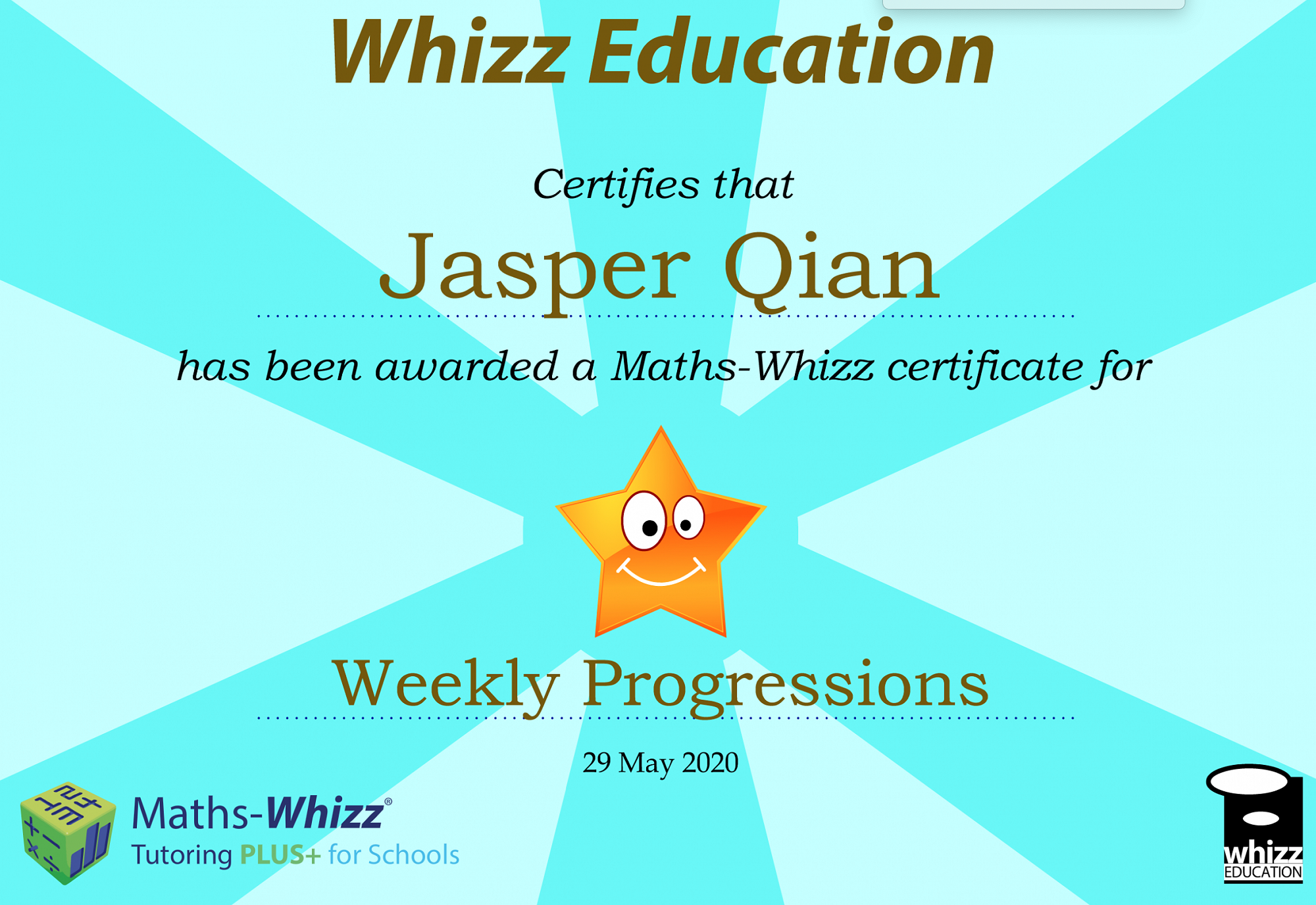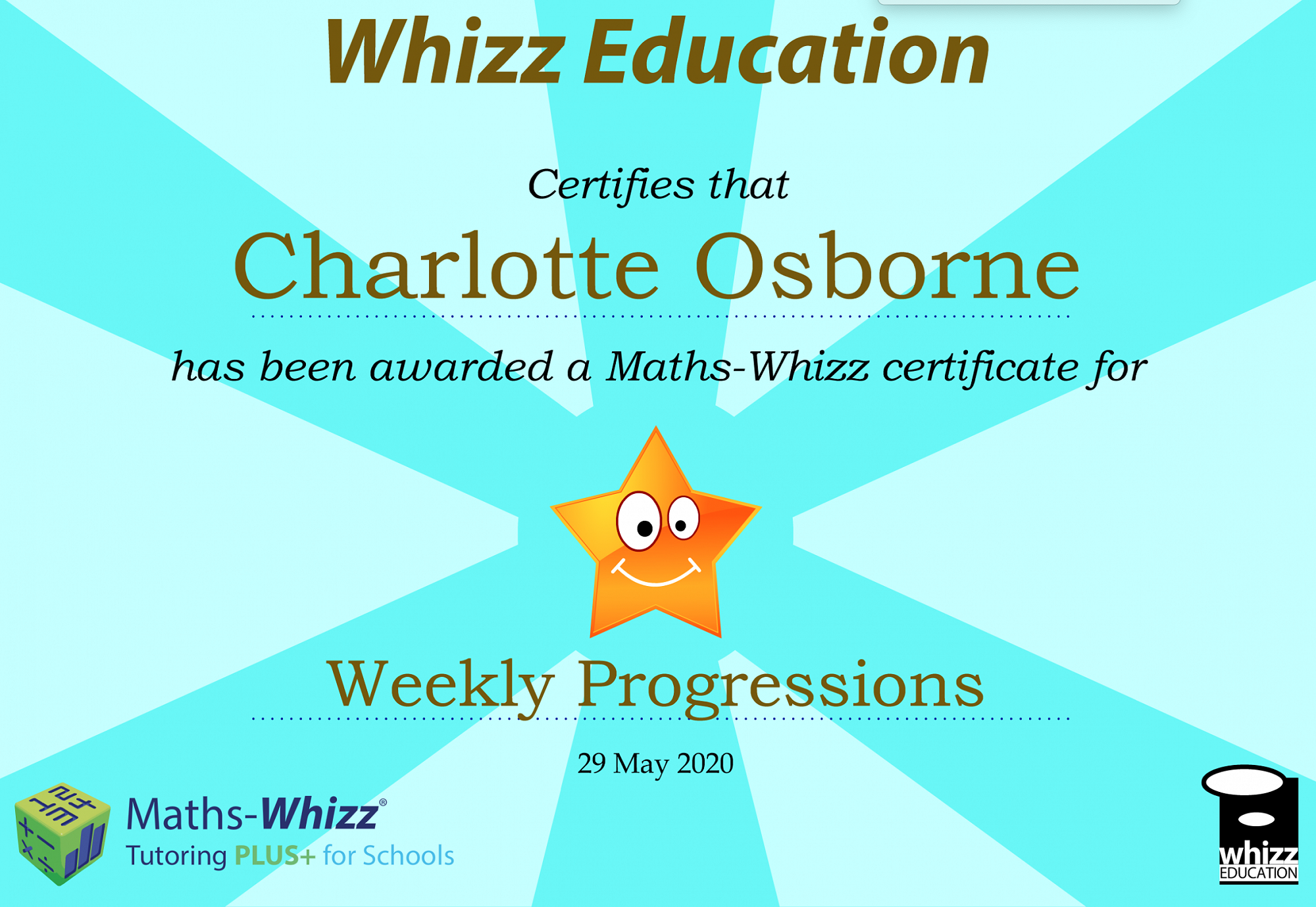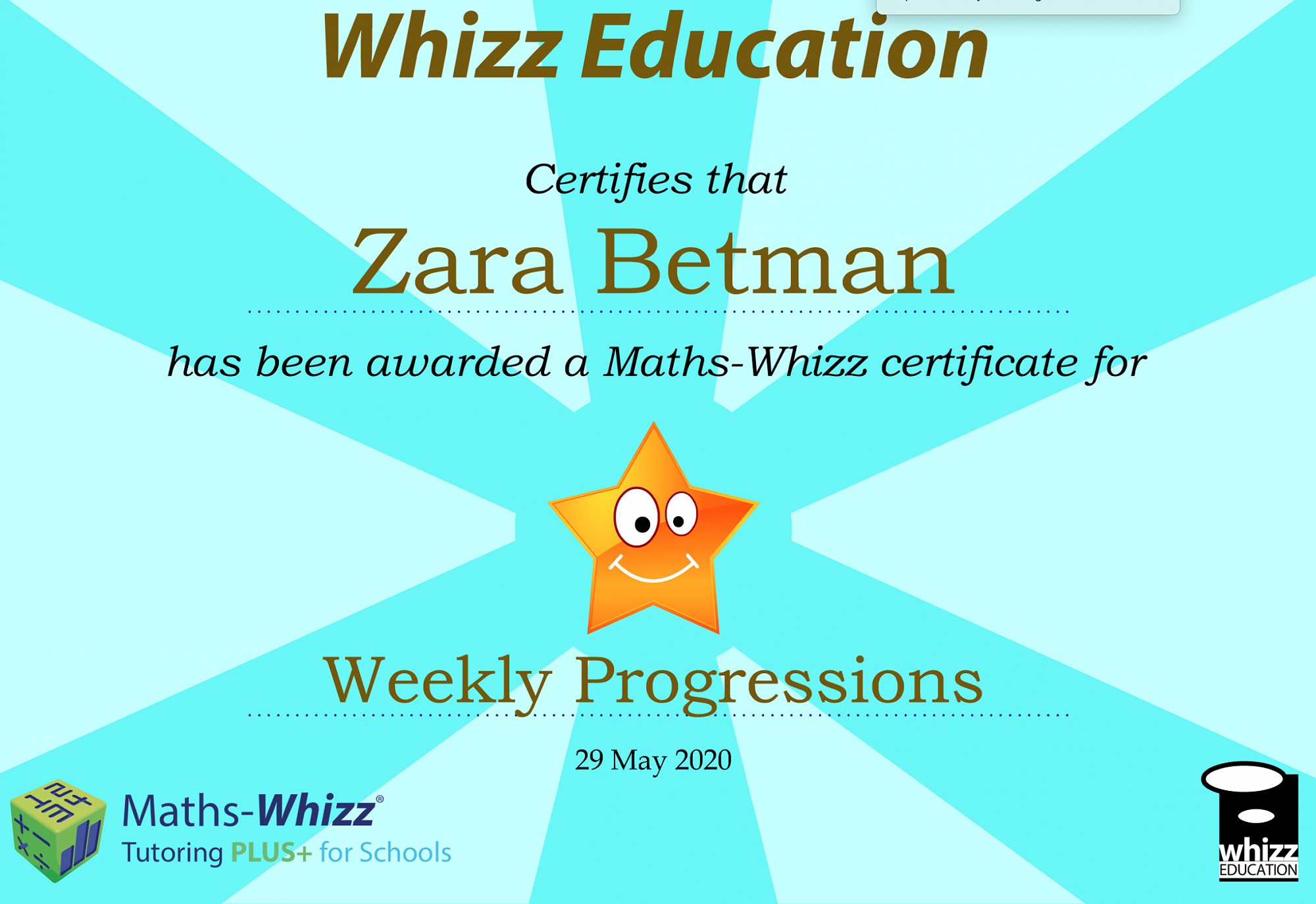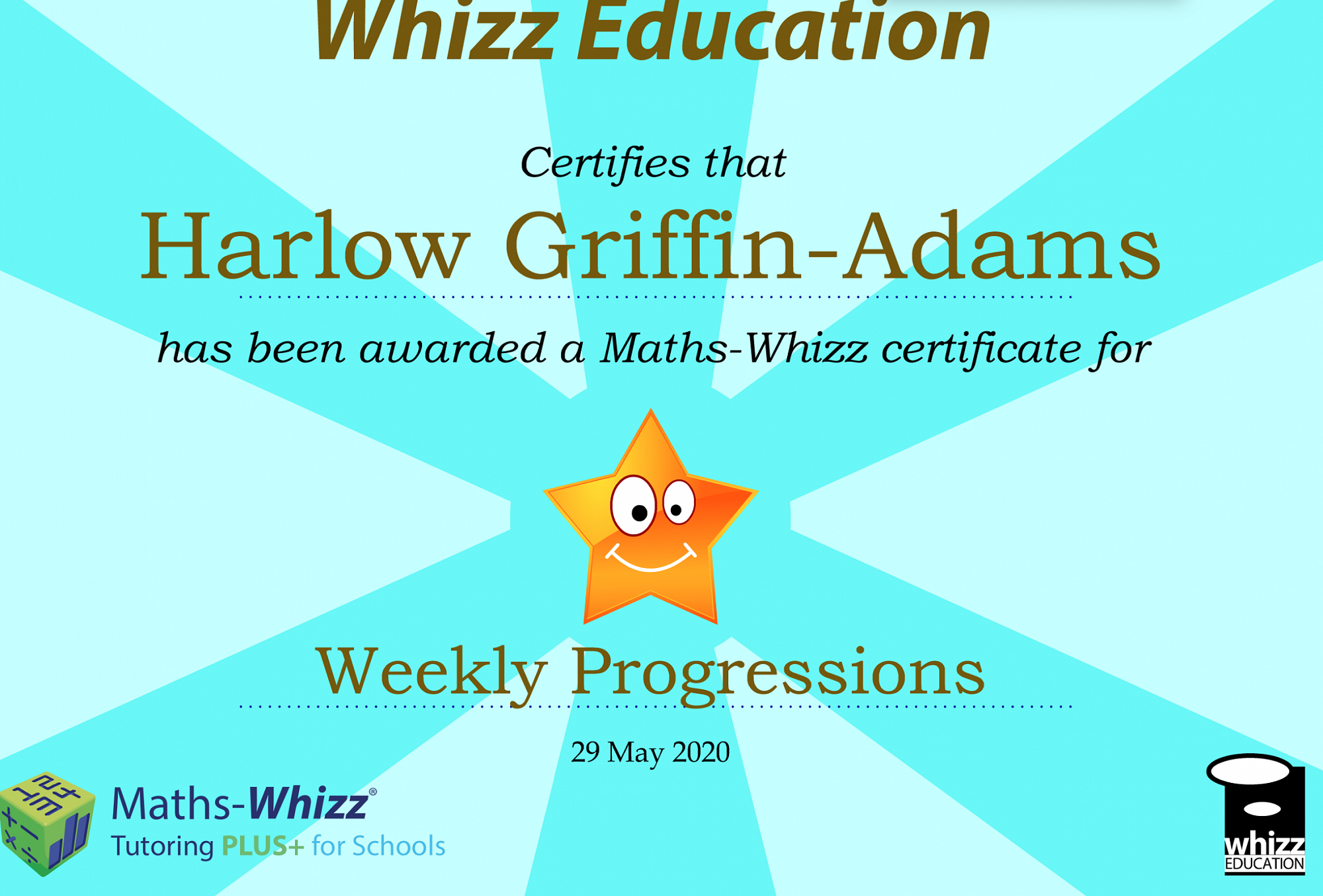Congratulations to the following students who have received Maths Whizz certificates this week.