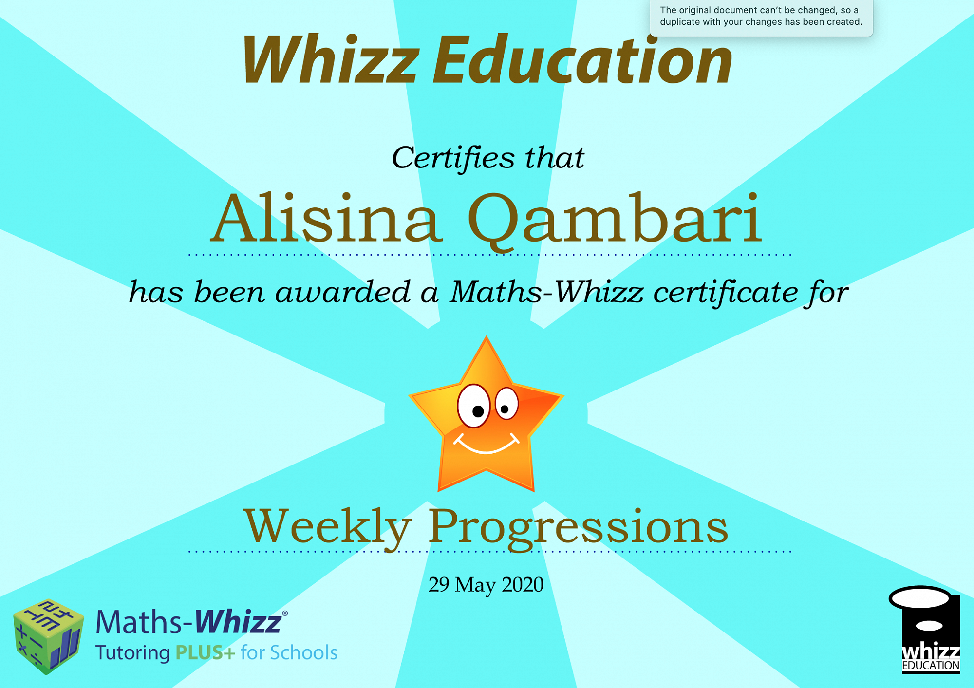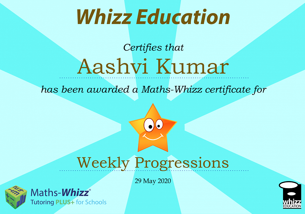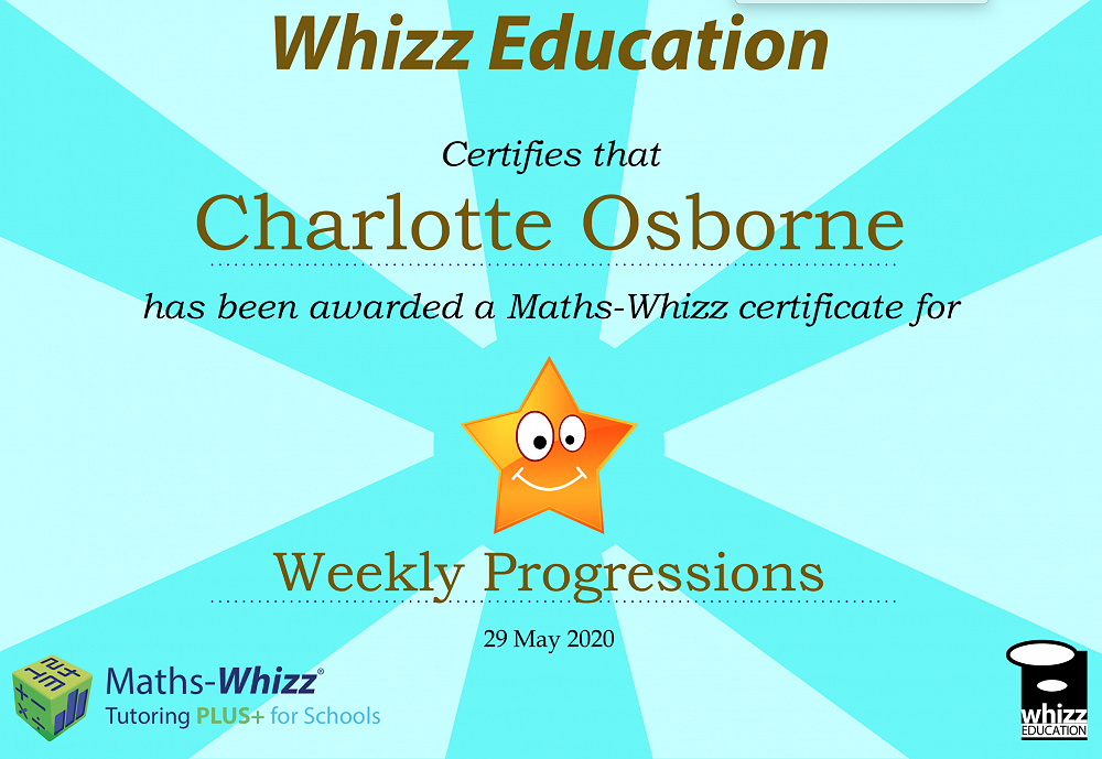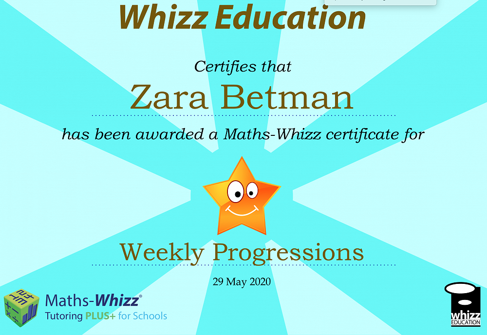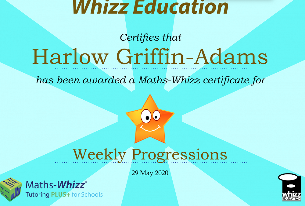 Congratulations to the following students who have received Maths Whizz certificates this week.