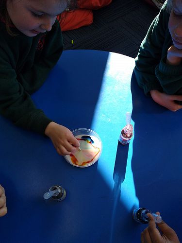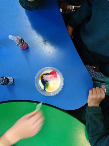 We looked at the affect dishwashing liquid had on food colouring when it was in milk. We used both trim and full fat milk, making a hypothesis about what we thought would happen and what would be different between the two variables. Take a look at some of the photos of us experimenting below or try it at home: https://sciencebob.com/a-color-symphony/