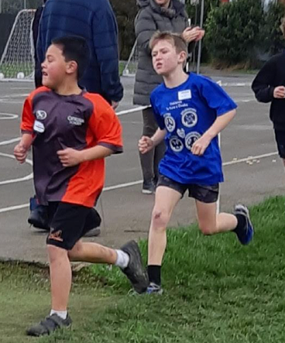 Next up was the year 4 boys 1000m race with 54 entrants. Aaron and Max were up against tough competition. But they were up to the challenge. Max's sprint speed rocketed him to high up near the leaders early on. The effects of a cold not helping him in the later stages, but he dug deep and kept going and was rewarded finishing in the top half of the field with 26th. Aaron worked consistently hard throughout the race. His pacing was perfect. His yellow Oakland's top not too far behind the leaders. He ran really well for 11th place.