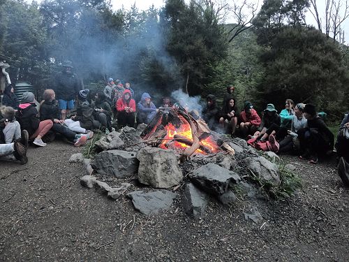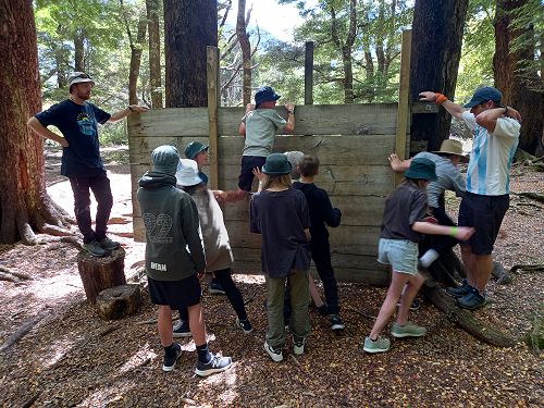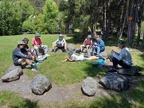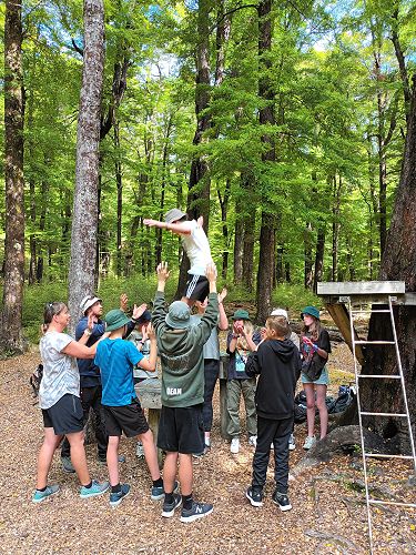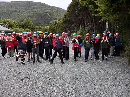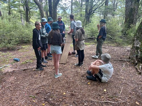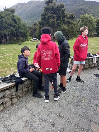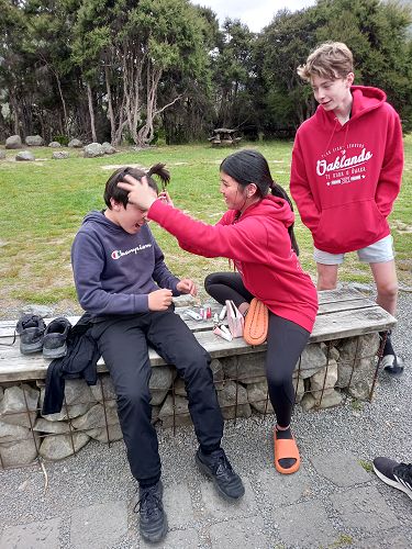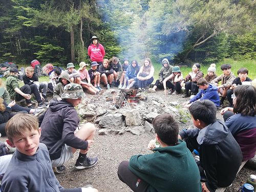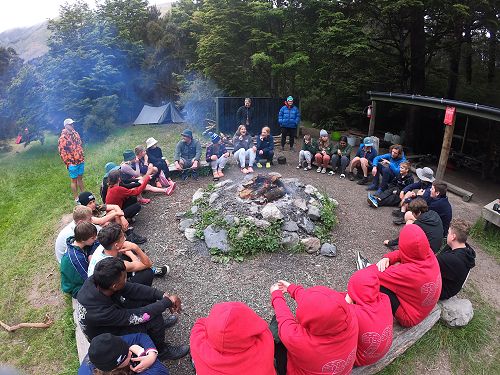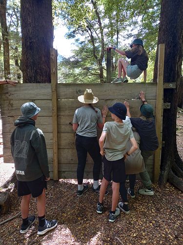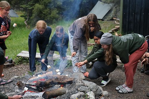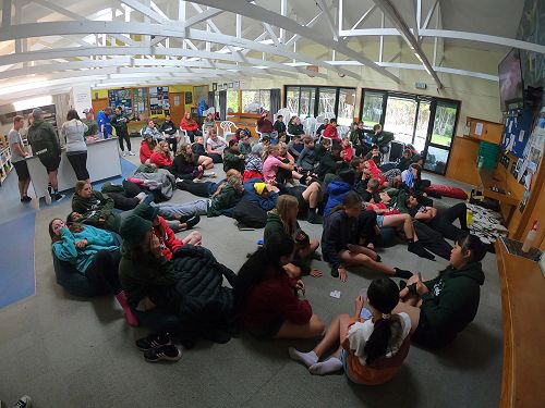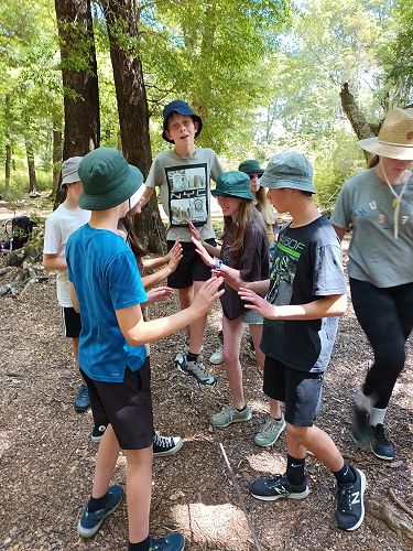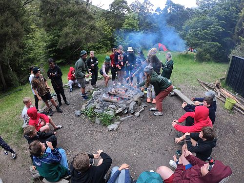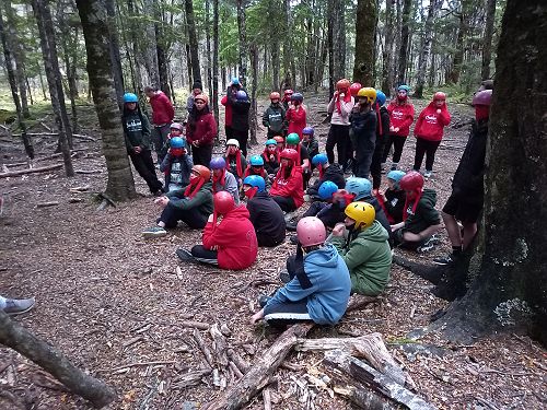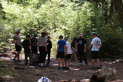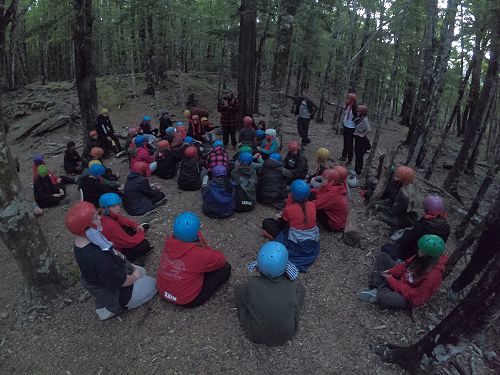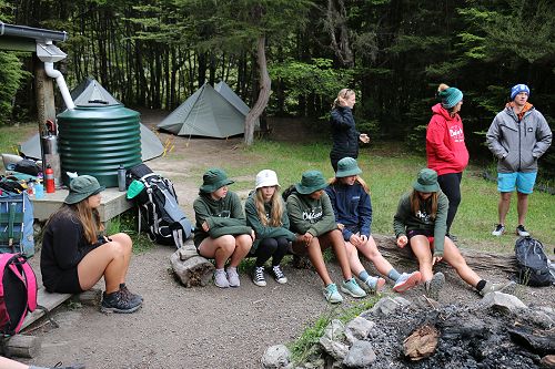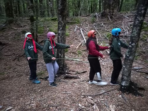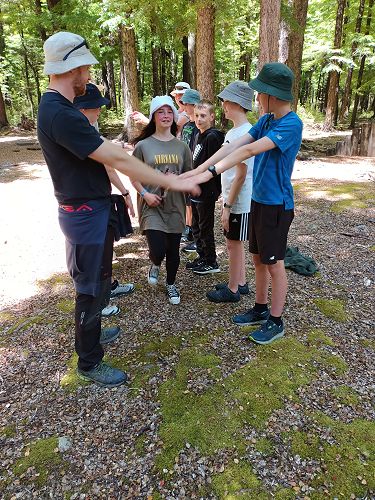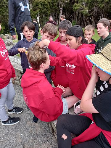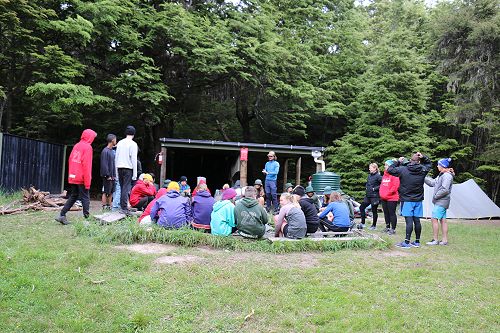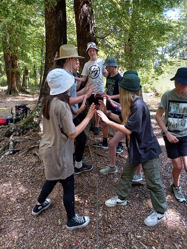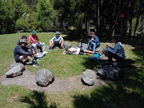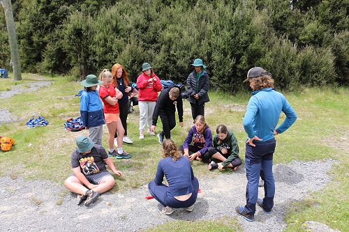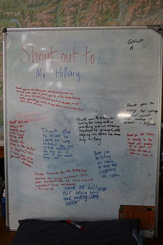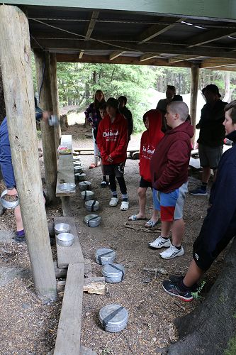On arrival the Year 8's set themselves up and decamped their gear. The students then got to meet their instructors and set out their group agreements. Each group had a different piece of camping gear to write their agreements on. Some have a helmet, while other groups had a cone.