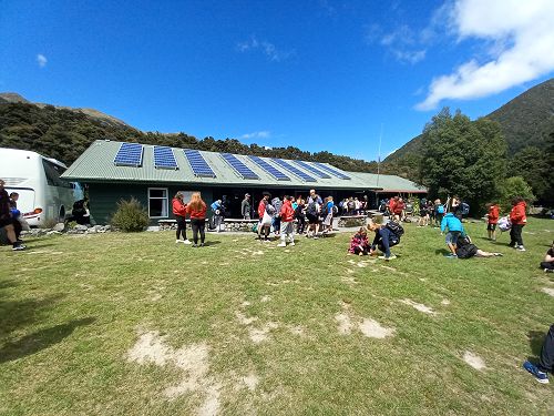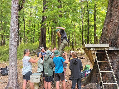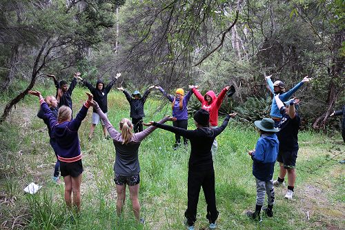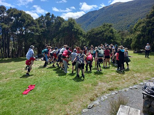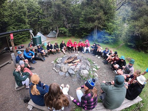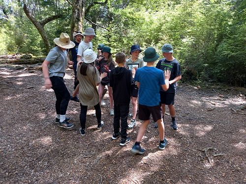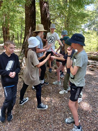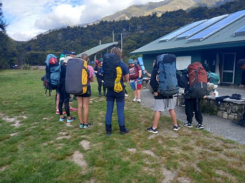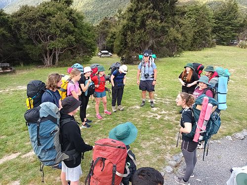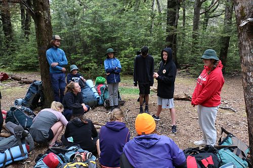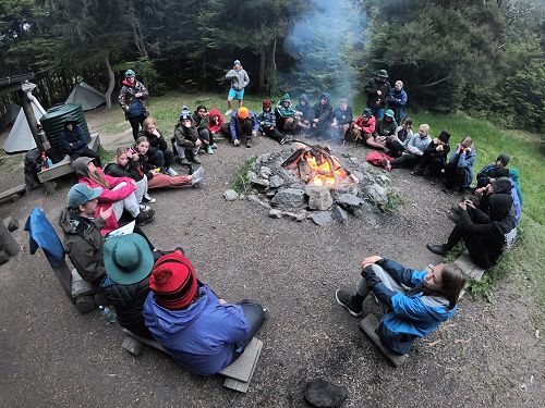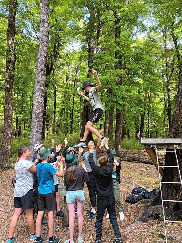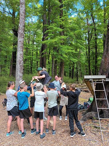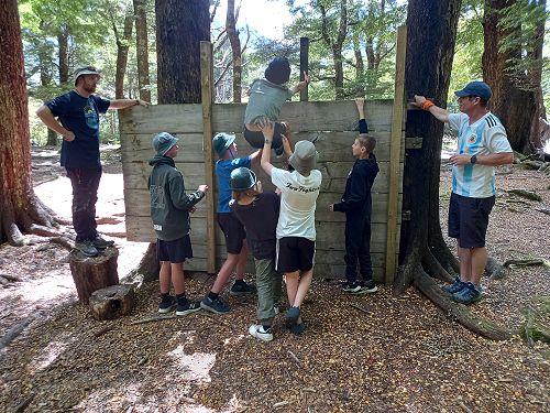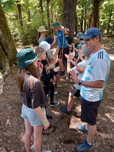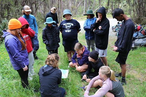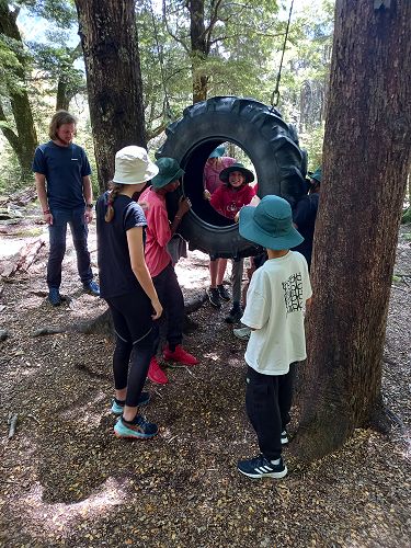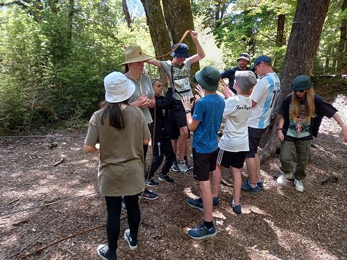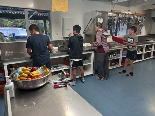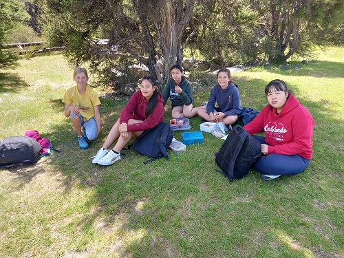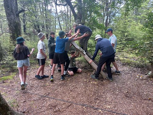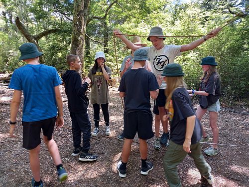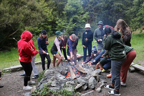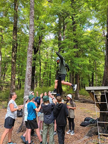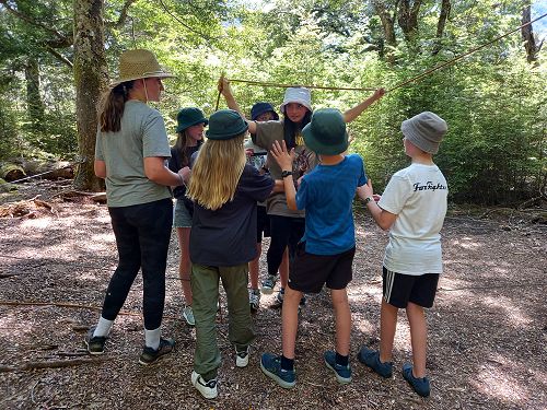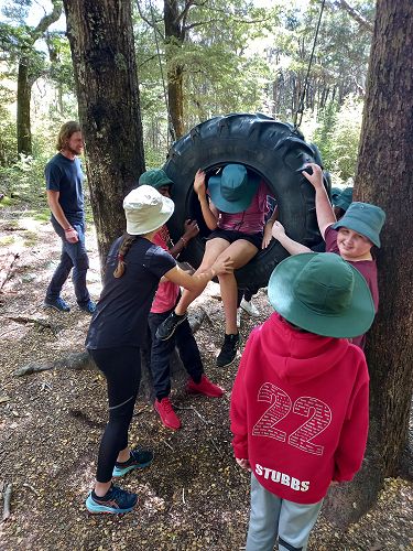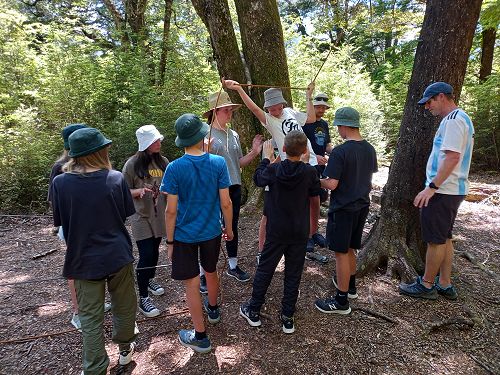 On arrival the Year 8's set themselves up and decamped their gear. The students then got to meet their instructors and set out their group agreements. Each group had a different piece of camping gear to write their agreements on. Some have a helmet, while other groups had a cone.