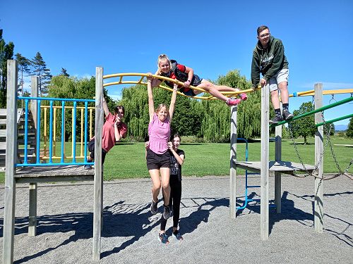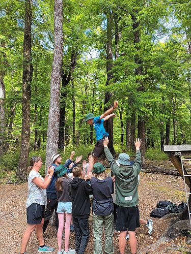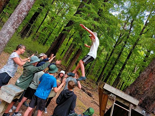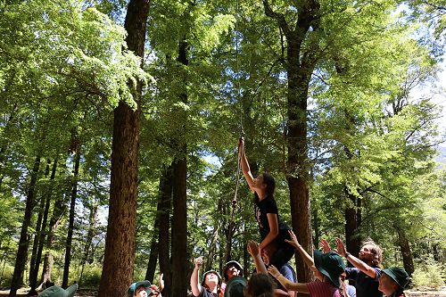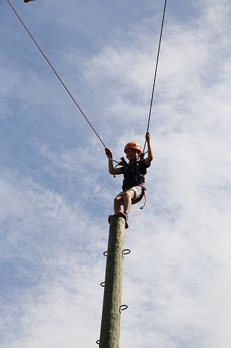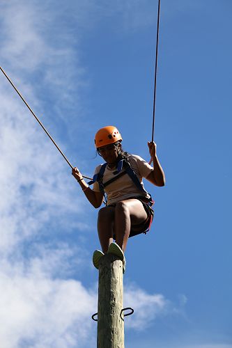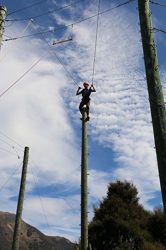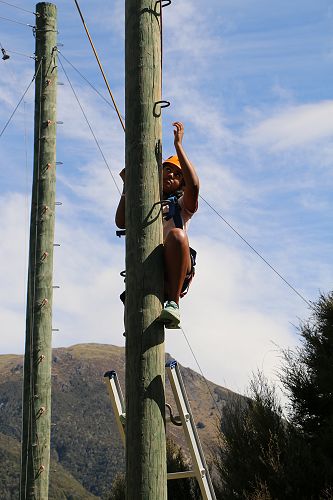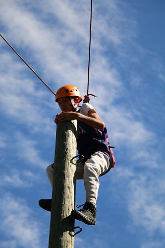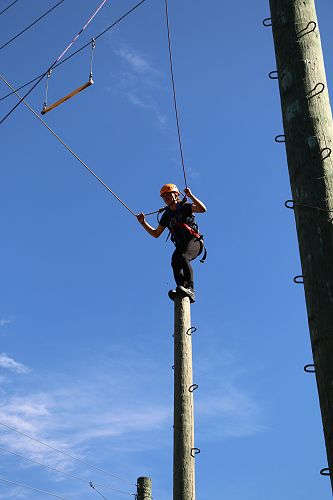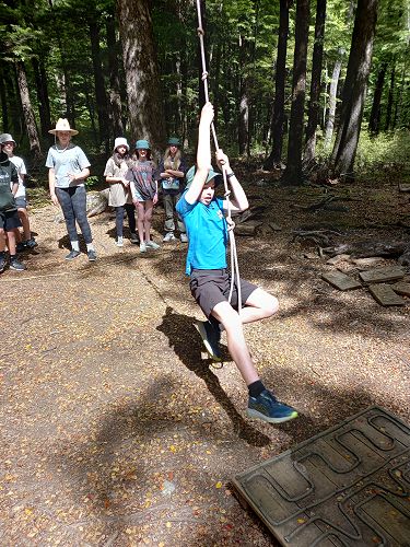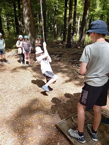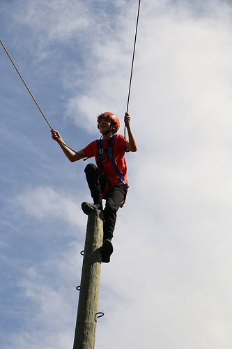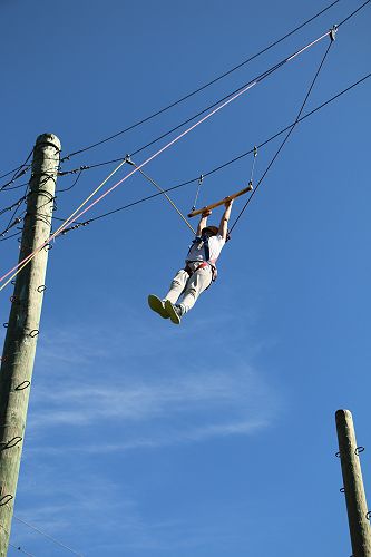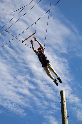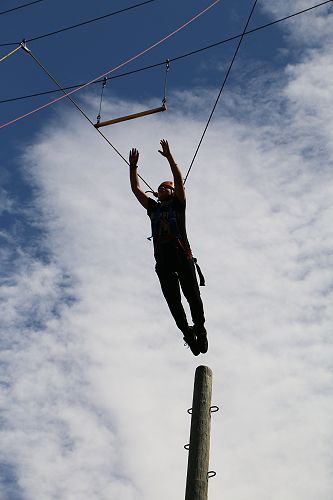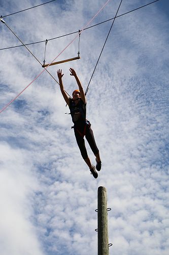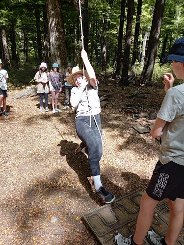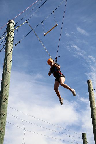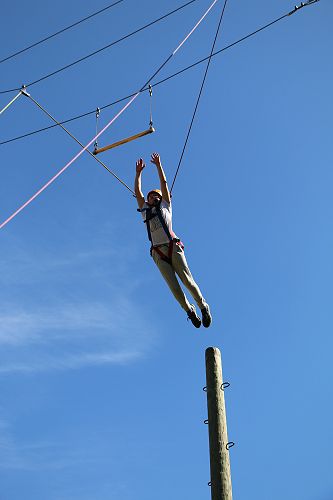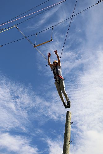The flying kiwi was a rope based activity where students were harnessed up and pulled up into the air. Check out the photos below.