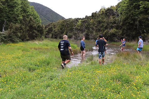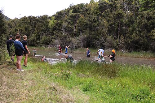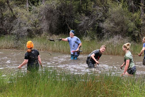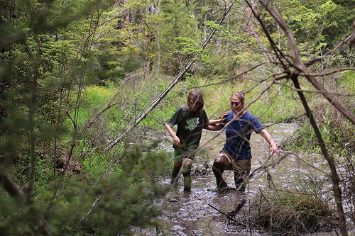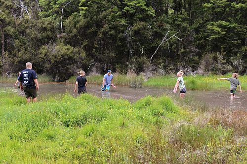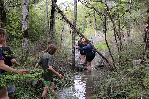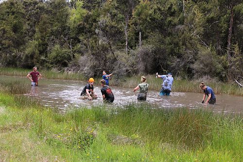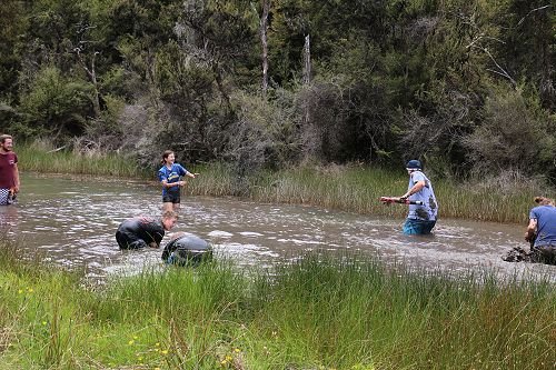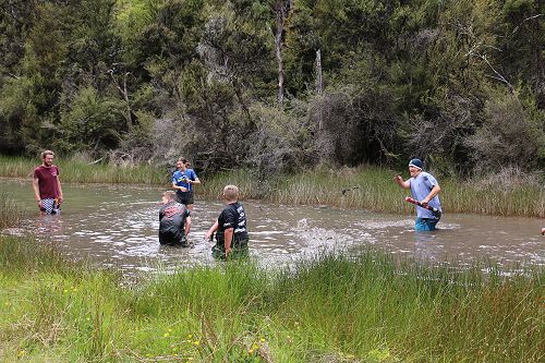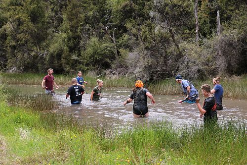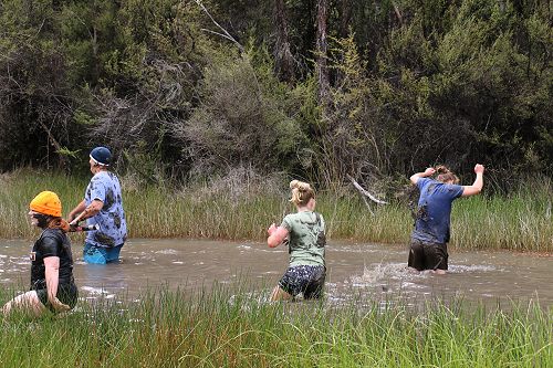 The students changed into old clothes for a stroll through the swamp. While doing this, some groups decided to have a bit of fun and throw mud at each other. After getting covered in mud they washed of in the stream or Boyle River.