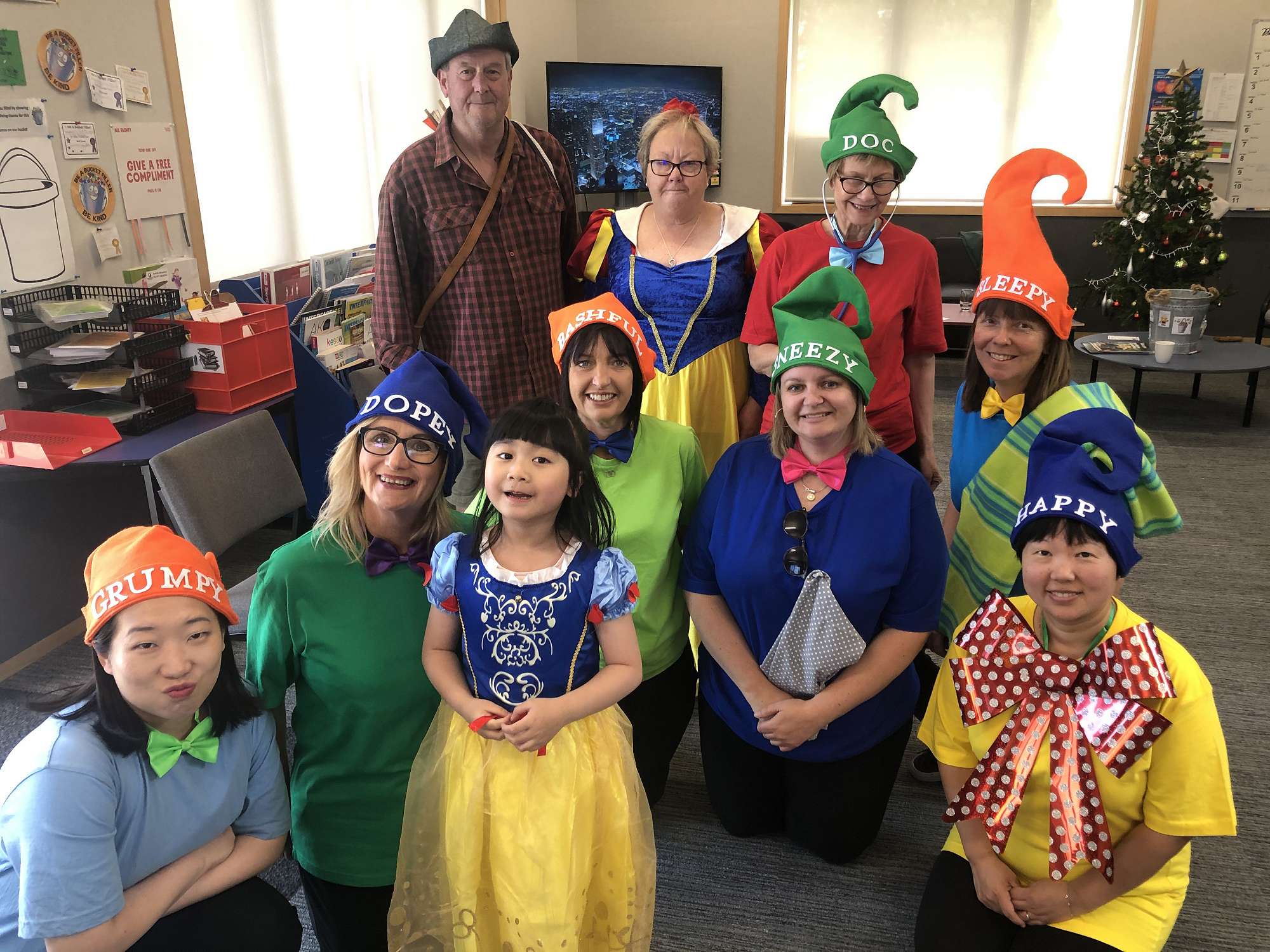 Snow White(s) and the Seven Dwarfs (with the woodsman)