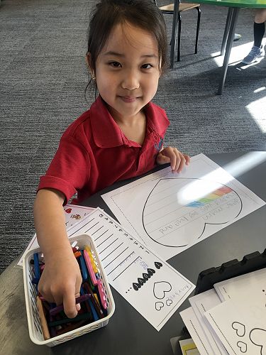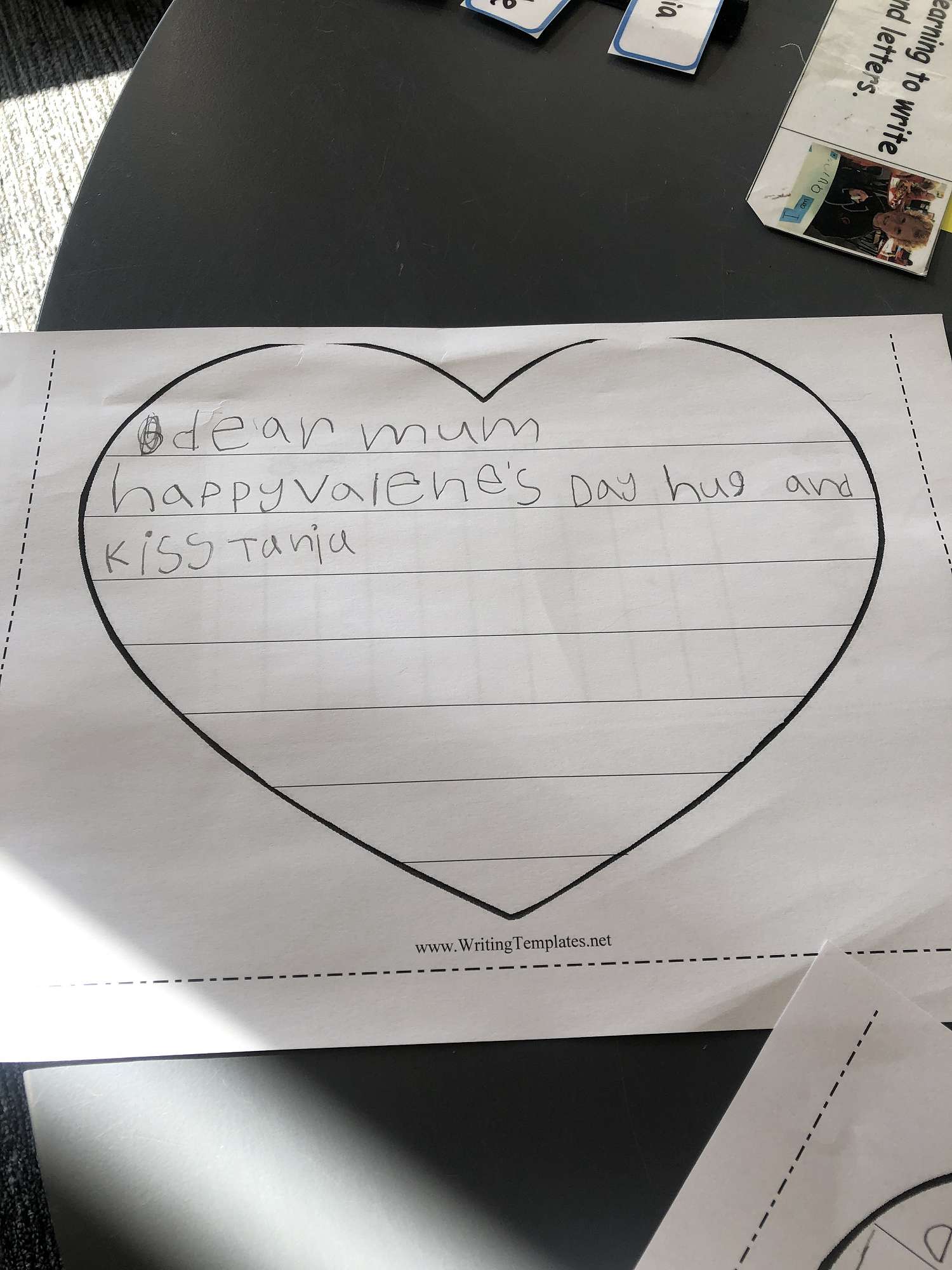 On the Whakamata Stations, we had word cards and writing templates where the children can independently write a valentine's message to a friend or family member.