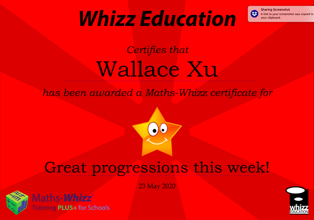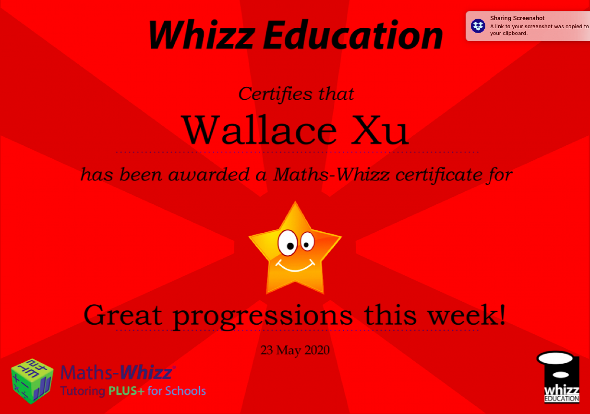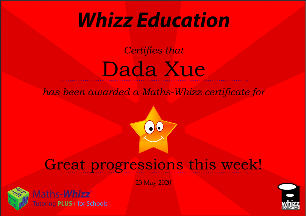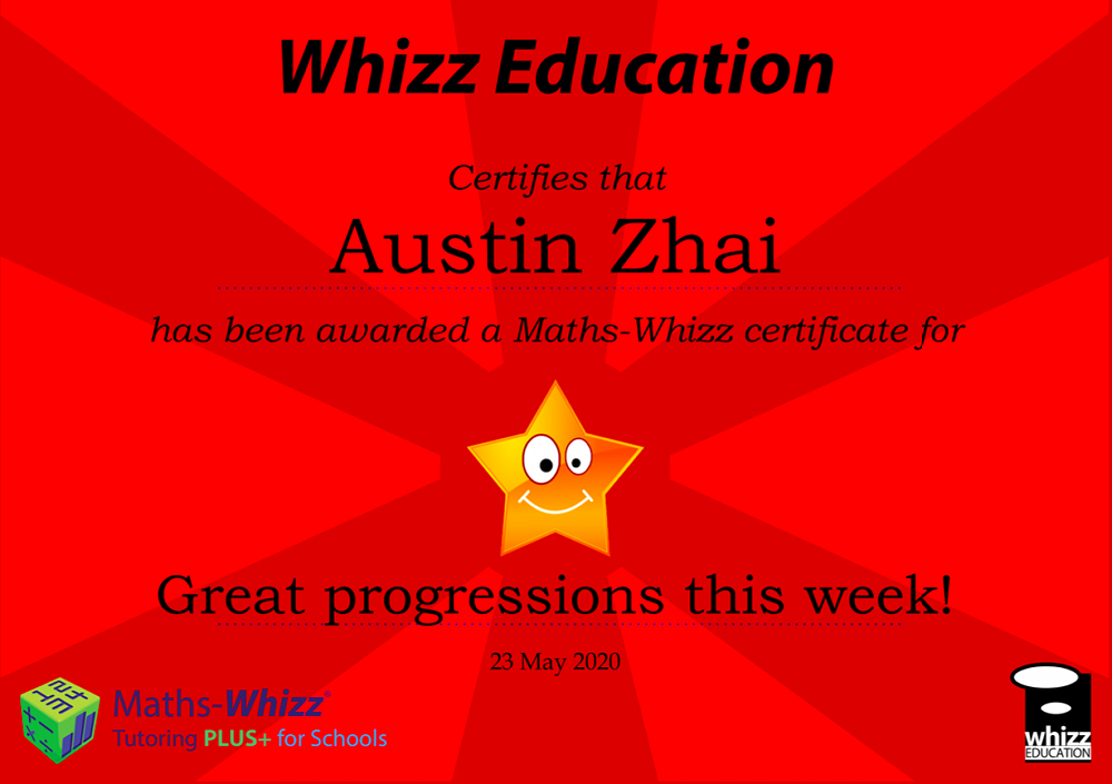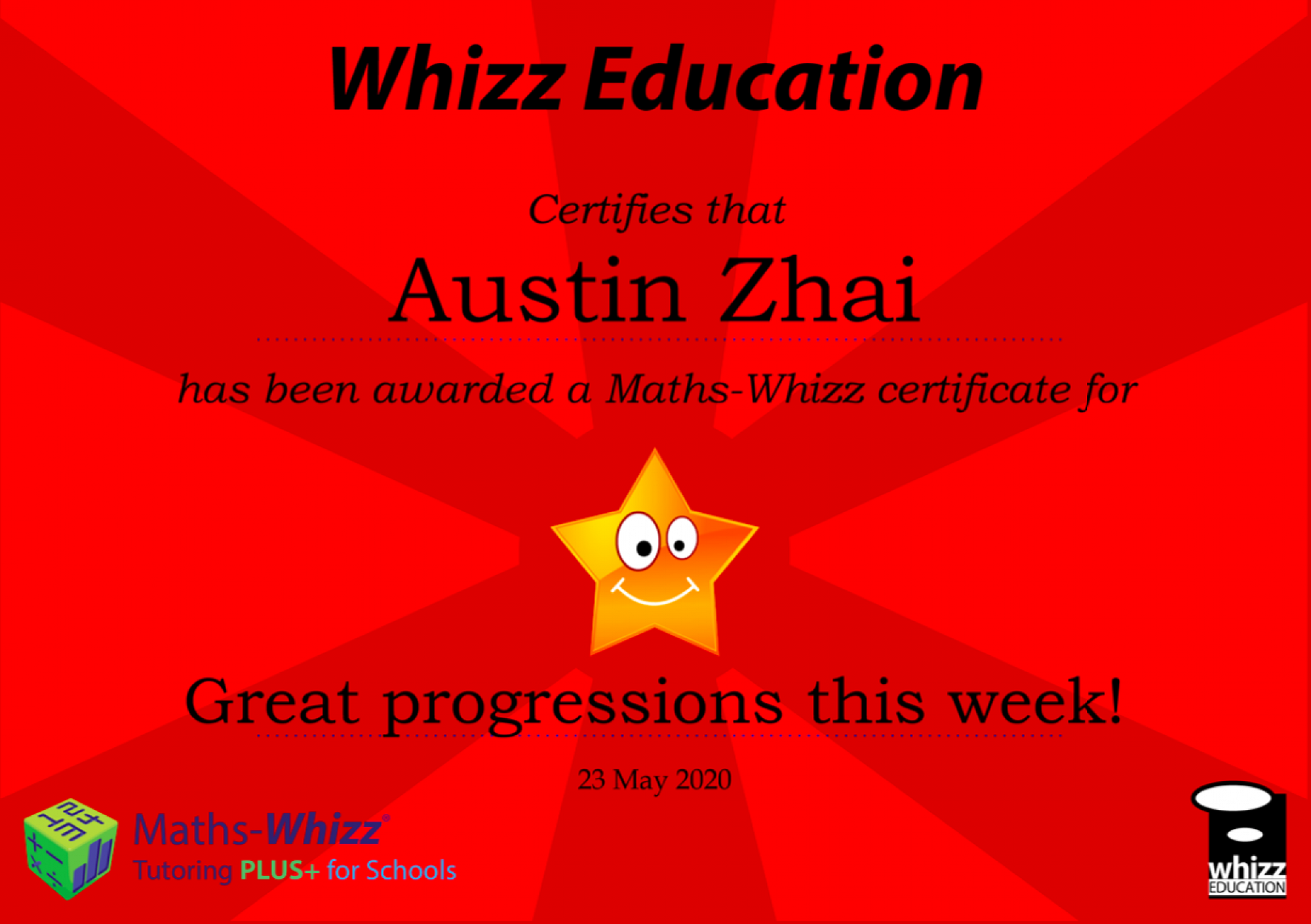 Congratulations to Austin, Dada and Wallace who are receiving Maths Whizz certificates for making multiple maths progressions last week. We will be awarding 3 certificates each week to those students who have made many progressions during the week.