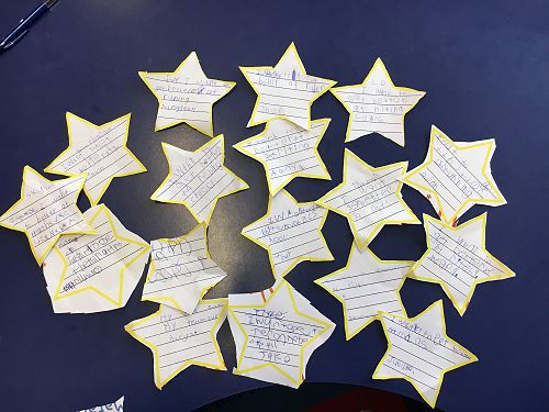 We talked about the ways we perceive stars and the discussion came around to wishing on a star. In guided writing, the children wrote what they wished to get better at at school. They then published the wish on a star.