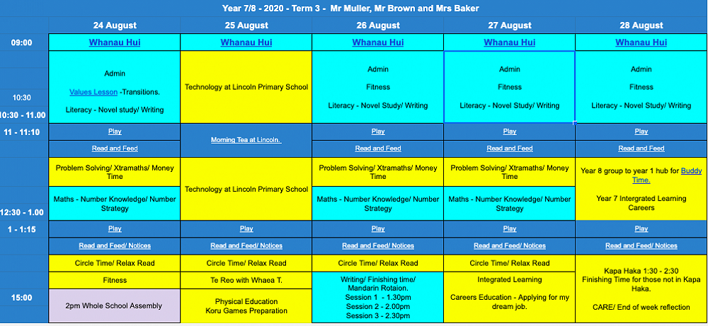 Check out the timetable for a basic outline of what is happening in the year 7/8 Hub next week.