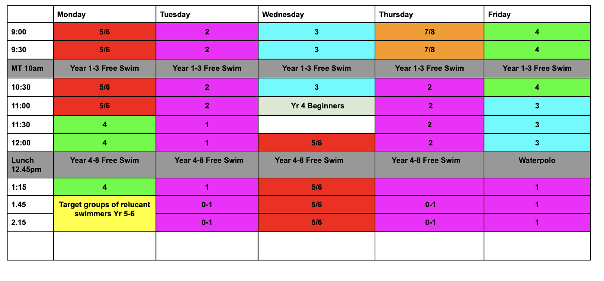 Year 5/6 are swimming on Monday and Wednesday each week till the end of week nine. We are looking to achieve a 100% success rate in swimming attendance. If students are unable to swim then please contact the Kaitiaki Teacher via email.