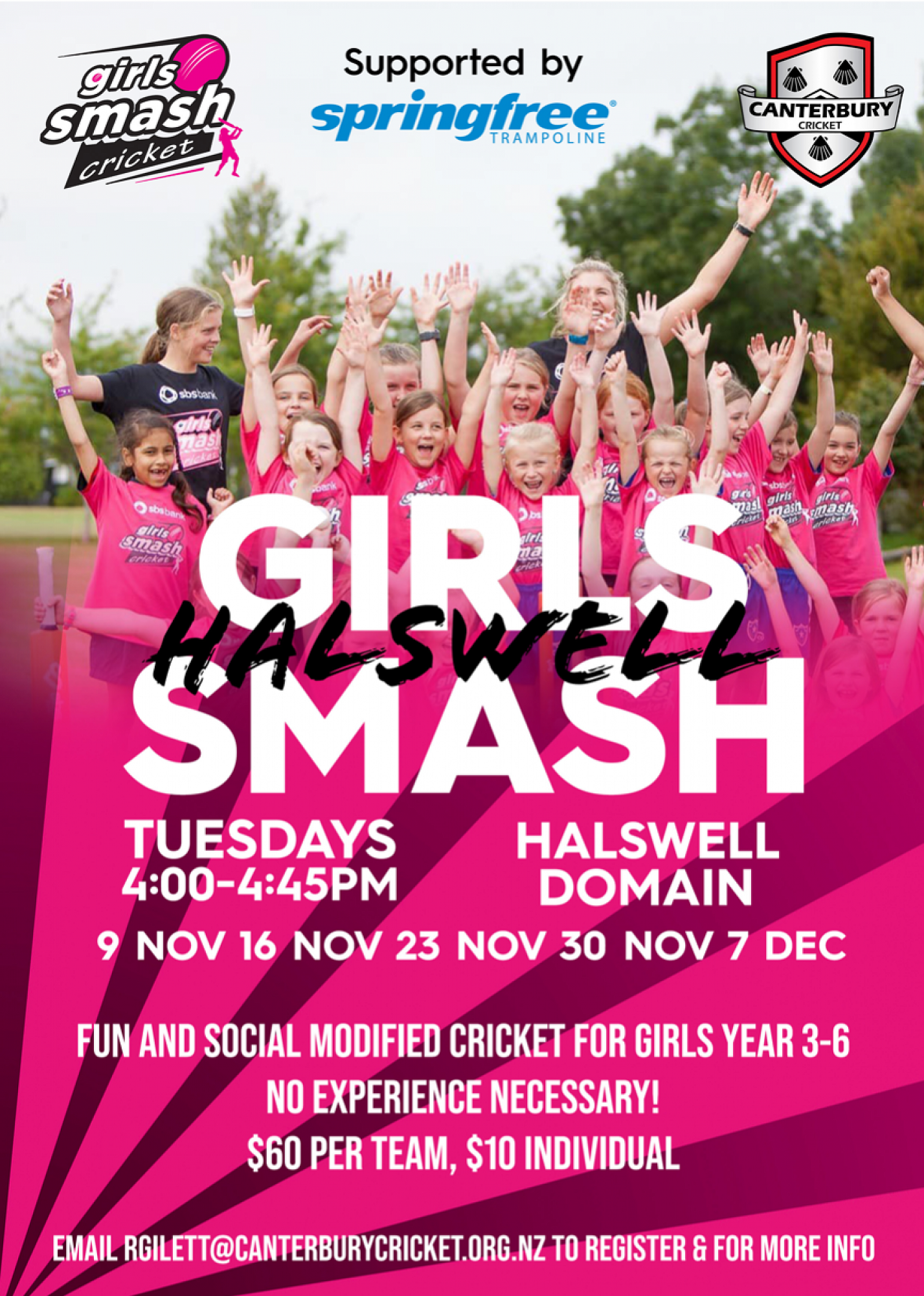 Canterbury Cricket are excited to introduce a new modified playing opportunity this season for primary aged girls. Based off the success of equivalent programmes run in Otago and Wellington, Canterbury Cricket will be running Girls Smash, supported by Springfree Trampoline, at Halswell Domain in Term 4.