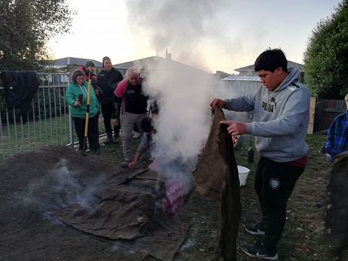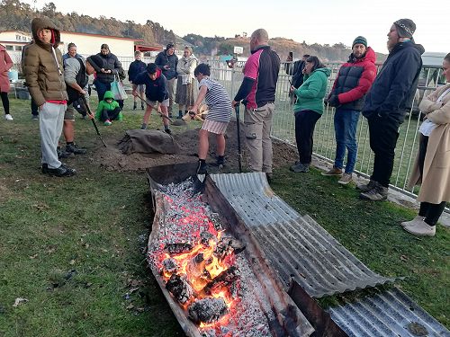 Mike Mullins and some brave boarders from Waitaki Boys' High School rugged up from the cold and taught us how to set the fire to heat the irons. Damien McNamara and his astronomy tools were here, ready to sight Matariki as it arose in the sky.