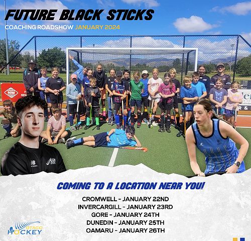 Future Blacksticks Coaching Road Show 2024The Future Black Sticks based out of Dunedin are touring the lower South Island coaching hockey to the young players in the region. The money they raise will help them pay for their hockey endeavors for 2024. We have a good number of FBS who have come through the regional associations. There were 24 athletes selected into the FBS/ JBS program. The Coaching Roadshow is an awesome opportunity for these young athletes to give back and inspire young hockey players in this part of New Zealand and show that players from the south can be recognised and rewarded for all the hard work they put in. Register here https://forms.gle/khpp3tKgxub5dFoAA or scan the QR code The roadshow will start in Cromwell on Monday the 22nd of January and end in Oamaru on Friday the 26th January. Cromwell - Monday 22nd January Invercargill - Tuesday 23rd January Gore - Wednesday 24th January Dunedin - Thursday 25th January Oamaru - Friday 26th January There will be 3 sessions a day for the five days. Each session will be 2 hours long and will begin at 10.00 am with the U13 age group (Yr5-Yr8) and end at 5.30 pm with the U18 age group U13 Age Group 10.00 am - 12noon U15 Age Group 1.00 pm - 3.00 pm U18 Age Group 3.30 pm - 5.30 pm The players will run skills sessions to help players refine skills they already have and show new skills/techniques the players may not have seen before. There will be game elements to these sessions - as fun and enjoyment are key elements to a quality hockey session. Otago Hockey staff - Hymie Gill and Jolene Casey will be supporting these coaching sessions. We will also offer coaching development which will be advertised soon. The cost for the 2-hour coaching session is $60 per child. Please make payment to Otago Hockey Association. Bank details 03-0905-0460917-10, Reference Child's name