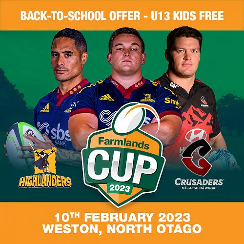 Visit this articleThis year local school kids and their families will get to see their heroes up close as they battle it out at Weston Park (home of Valley Rugby Club) in Weston on Friday 10th February. To make it even easier to enjoy, Farmlands is offering under-13s free GA tickets to see the game. All you need to do is stop by the Farmlands Oamaru store, to grab tickets for your children or jump online to www.Ticketek.co.nz/highlanders Terms and conditions apply: One free ticket per individual. Proof of age required at store. Game Day – Friday 10th February, gates open 4.00pm, kick off 5.30pm. Minors must be accompanied to the game by an adult.