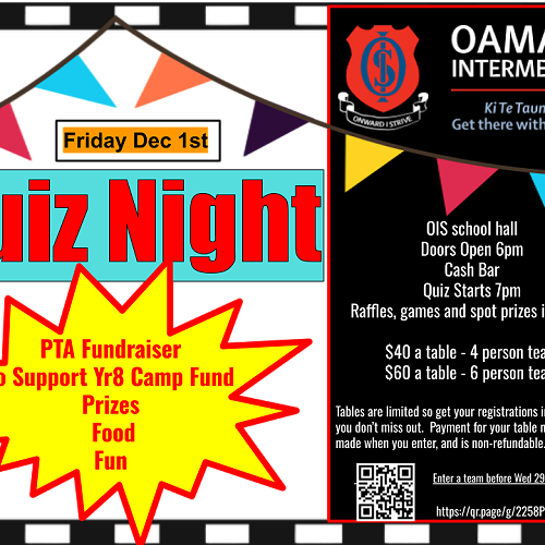 The PTA is holding a Quiz Night on Friday, December 1st, with the help of the OIS staff.