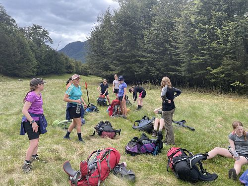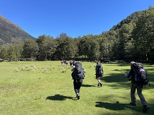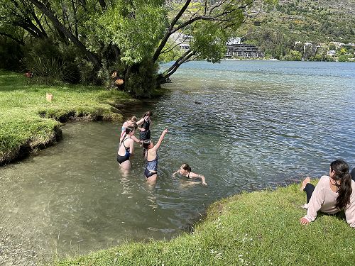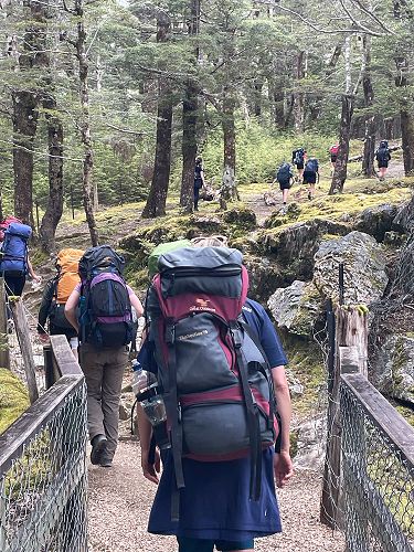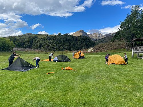 On the first day we travelled to Glenorchy with a 2 hour stop in Queenstown for lunch. That night, we tented at the Glenorchy Lodge which had stunning views of the mountains. On Tuesday morning we started our journey up the Caples track, this had amazing views to enjoy, and many river crossings to conquer along the way. After 6 hours of tramping, we made it to the Upper Caples Hut where we enjoyed a lovely long drop and a couple 8-person bunk beds. Unfortunately due to torrential rain and gale-force wind warnings we were unable to continue to the Saddle, so instead we descended back down towards the car park, this was a lot faster and more enjoyable as we were going mostly downhill. Our tramp was hard at some points but it was definitely worth it for the incredible views and the feeling of accomplishment afterwards. Some other highlights were swimming in the freezing cold lake, playing disc golf in the Queenstown gardens and looking around the shops in Queenstown and Arrowtown. On the final night we tented at the Arrowtown campground which had a very exciting playground for us to enjoy, we later had a gourmet meal of burgers and ice cream.