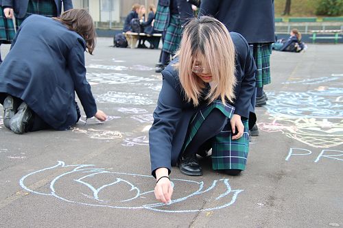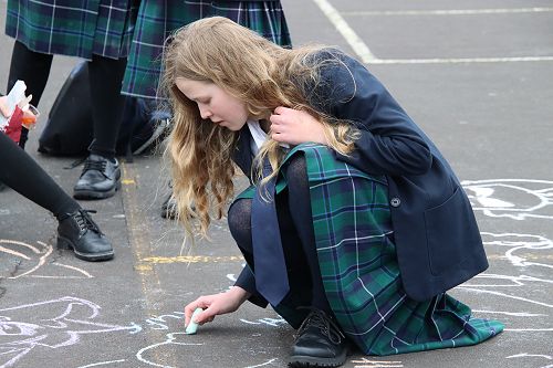 On Tuesday- thanks to the fine weather!- Students enjoyed 'Chalk on The Courts' at lunchtime. An impressive array of chalk art and fun was had.