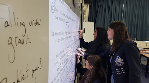 Year 12 Physics students volunteered to show how to solve problems to their peers to help the class progress.