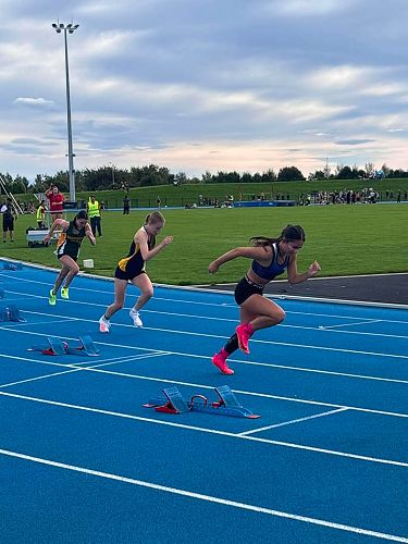 Skye Wilson (U16) continued her fine form in the long jump, breaking the South Island record with a leap of 5.42m into a brisk headwind. This broke the previous record by 12cm. Five minutes later, Skye was on the start line of the 80m hurdles where she finished with a third placing. She concluded her individual events with another third-place finish in the 100m.
