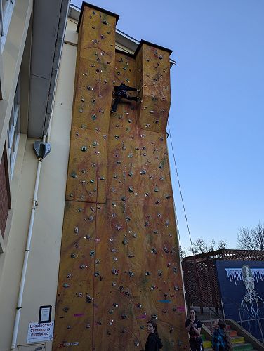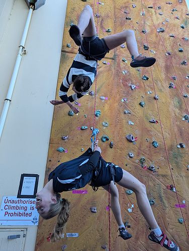 We spent the last two weeks of Term enjoying the last moments with this wonderful climbing wall. Last Monday, we enjoyed a fun mix of our Monday and Thursday groups, not just climbing but also messing around (thank you, Arlia and Julia, for the amazing photo opportunities) as we were not sure whether the weather would permit another climb the next week. It was an enjoyable little hour or two, involving many attempts to complete set climbs by myself and Mr Bleckinger, hanging and swinging on our ropes (safely, of course!), and more chill fun.