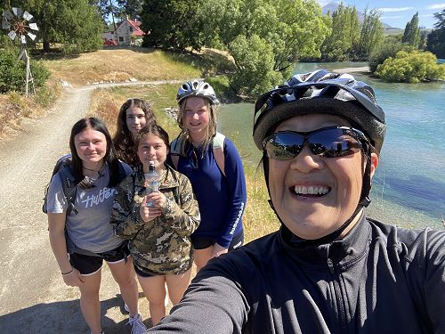 In December I went with 19 Year 10 students and three teachers to Albert Town. We camped at the Lake Outlet campground along the shores of the Clutha river. During the week we did a range of activities including hiking up Mt Iron, Diamond Lake to the Wanaka lookout, and a stroll along the track from Bremner Bay back to camp. On Tuesday we had amazing sunshine and biked 36km’s along the Outlet and Hawea River tracks. After our bike ride we were challenged to run into the river to cool off!