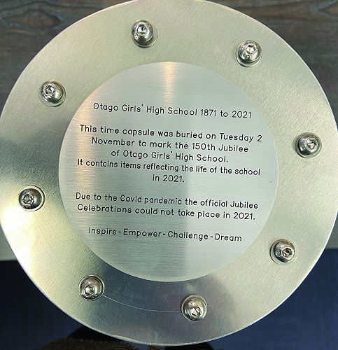 Another part of the event was the presentation of a time capsule reflecting what is happening at Otago Girls’ and our community in 2021. It has been buried deep in a secret location in the school in the hope that it will be unexpectedly discovered some time in the future.
