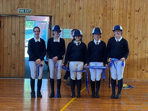 As a team of five we competed in the Palmerston Interschools competition. This was a really fun event with over 10 teams from schools around Otago competing in turnout, dressage, show jumping and fancy dress. We gained some fantastic results with Imogen and Jessie winning their dressage classes and Eila placing second. Imogen, Eila and Jessie also all placed in their respective show jumping classes. The whole team worked really well supporting each other over the day finishing 1st in turn out and 2nd in dressage and placing 2nd overall!