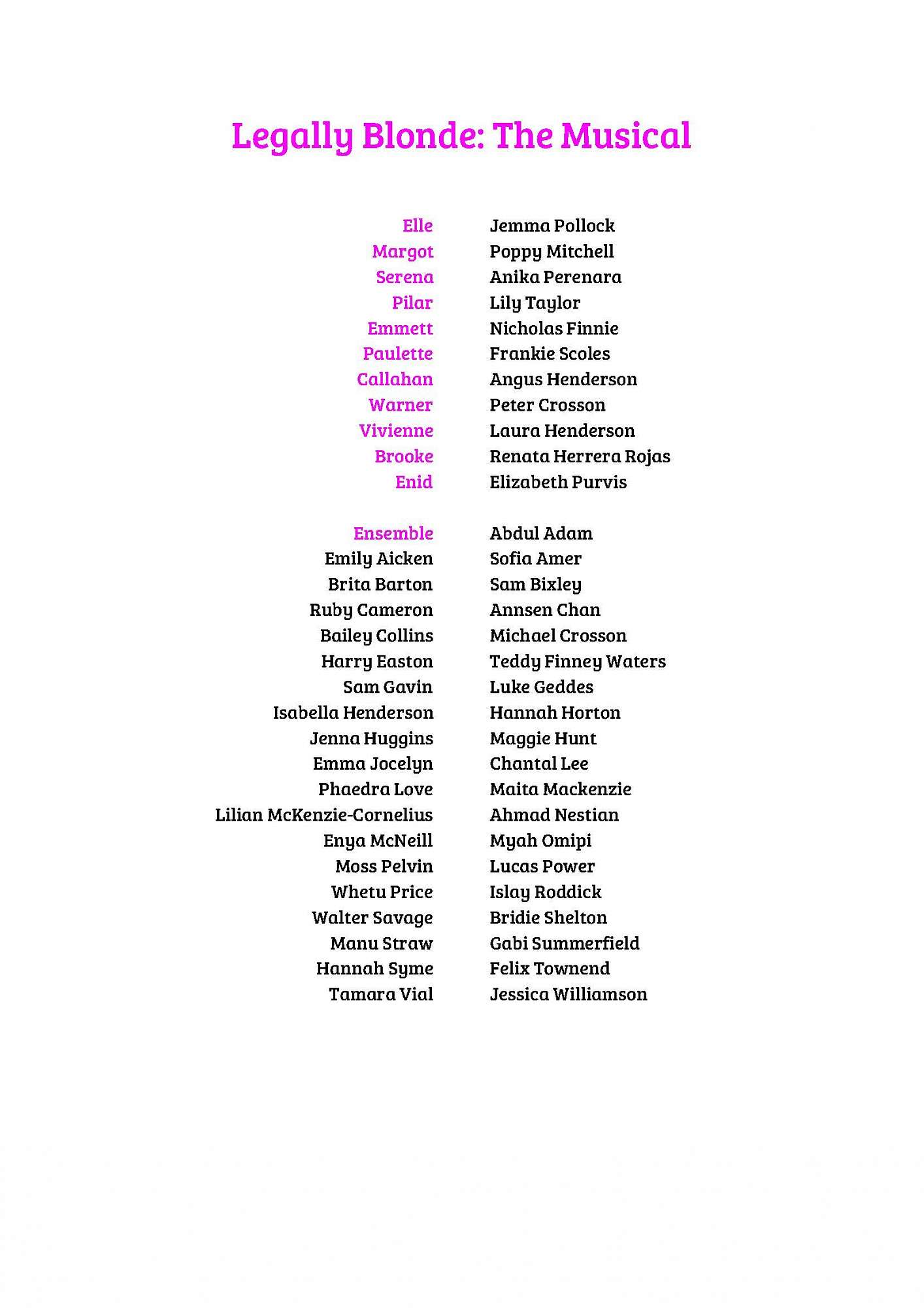 School Production - Legally Blonde Ms C. Hayward, Production Manager — March 1st, 2020 The cast list ... Image by: Jane Smallfield