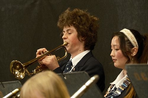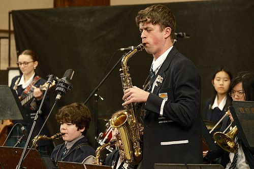 All Blues, the Otago Girls’ and Boys’ Jazz Big Band, competed at the 2025 Dunedin Youth Jazz Festival and received a “Gold Award” for an outstanding performance in their category. The group performed a fast swinging version of Wayne Shorter’s “One by One”, a high energy rendition of Madonna’s “Four Minutes” and a funky arrangement of Steely Dan’s “Home at Last”. The Big Band was a favourite with the audience and received a rousing reception at the close of their set. The exceptionally high standard of the band was reflected by the seven players selected for the All Star Big Band, FInn Marshall, Callan Power, Emily, Nikita Lu, Theresa Radka, Anson Fung and Grace Tiko, the largest number of any ensemble in the competition. Nicole Lo, James Phipps-Green and Carlotta Schwefel are to be congratulated for competing in their first competition, as well as Jayden Lu and Phoenix Haddow for performing on new instruments. Returning horn players Oban Voice, Jasmine Potter, Callum Thompson continue to serve the band well, alongside the dependable Sarah Pushenko and Fleur de Clifford in the rhythm section. The band was prepared for the competition by Dr Martin, who is also the Chair of the Dunedin Jazz Foundation and the chief organiser of the festival. He was ably supported by Mr Eugene Shields who has managed the administration of the festival and handled the stage set-up on the day. Photos by Bayard Randel.