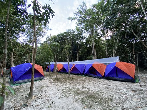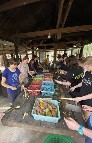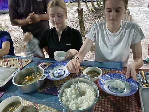 After our two days of sightseeing, we packed our bags and headed into the Cambodian jungle where we were guided by the wonderful Bunak. This was a three-day intrepid trek that was the height of some of our wildest adventures. Our first day was the toughest, we traveled the first three kilometers up the steepest part of the mountain. It was tiring, humid, and hot, but totally worth it. At the top we were greeted with a cultural hand-crafted lunch made by the local women. We were extremely grateful to them for fuelling us over those three days. Despite many of us finding the heat, humidity, and the sun very harsh, everyone challenged themselves and pushed through it to create some of the best memories and conversations that will not soon be forgotten. Arriving at our camp site we were so happy to see the tents already set up and we could just jump in and flop down onto our sleeping mattress! The makeshift toilet and cool wash down at the river made us appreciate the little luxuries we had at home.