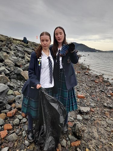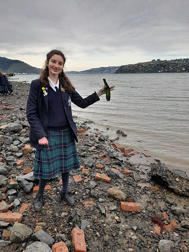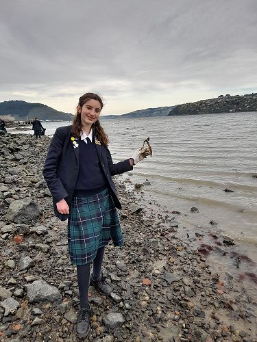 On Friday afternoon a group of us from the Otago Girls’ Enviroschools group went down to the Classroom by the Sea for the first rubbish cleanup of many. During this time it was low tide which helped us with our clean up to get the most rubbish out of the harbour in that area that we could. We managed to collect quite a bit of rubbish which is disappointing but will hopefully be the first step to decrease rubbish in the area and increase the water quality of the Otago Harbour.