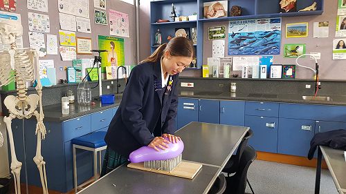 To demonstrate the effect of higher vs lower pressure, students were asked to inflate a balloon and push it hard on a bed of nails. No matter how hard they pushed the balloon did not pop. When they pushed a single nail into the same balloon, the balloon popped very quickly. The main difference was the surface area of nails the balloon was pushed into. More area means less pressure, so there is significantly less pressure on the balloon when pushed onto the bed of nails compared to pushed into a single nail, and the more the pressure, the easier it is to pop the balloon.