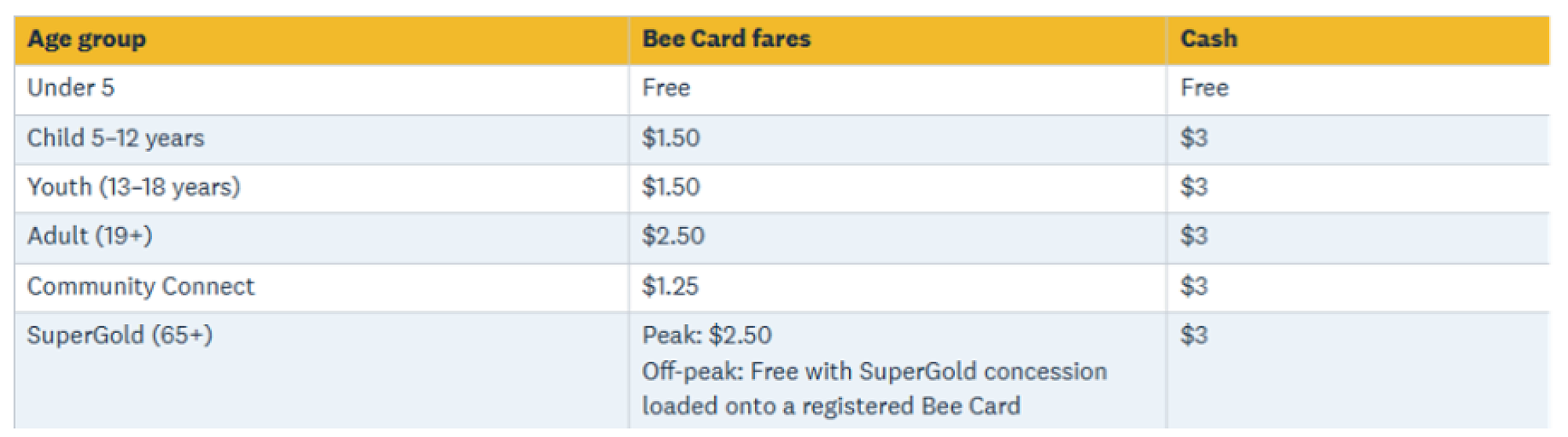 Bus fares are $1.50 for children and youth aged from 5 to 18 with a registered Bee Card, for a single trip. Bee Cards can be purchased for $5 with a minimum $5 top up, either at www.beecard.co.nz or at a local Bee Card retailer listed here www.orc.govt.nz/bee-card.
